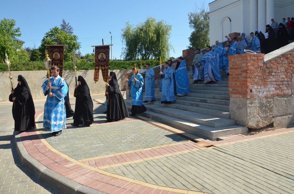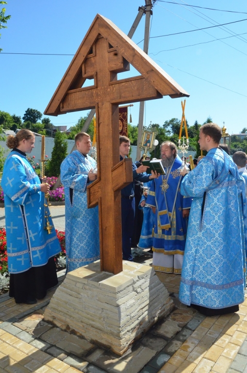 По окончании Литургии был совершен крестный ход вокруг храма. Также Владыка совершил чин освящения креста на месте погребения почивших насельниц обители.