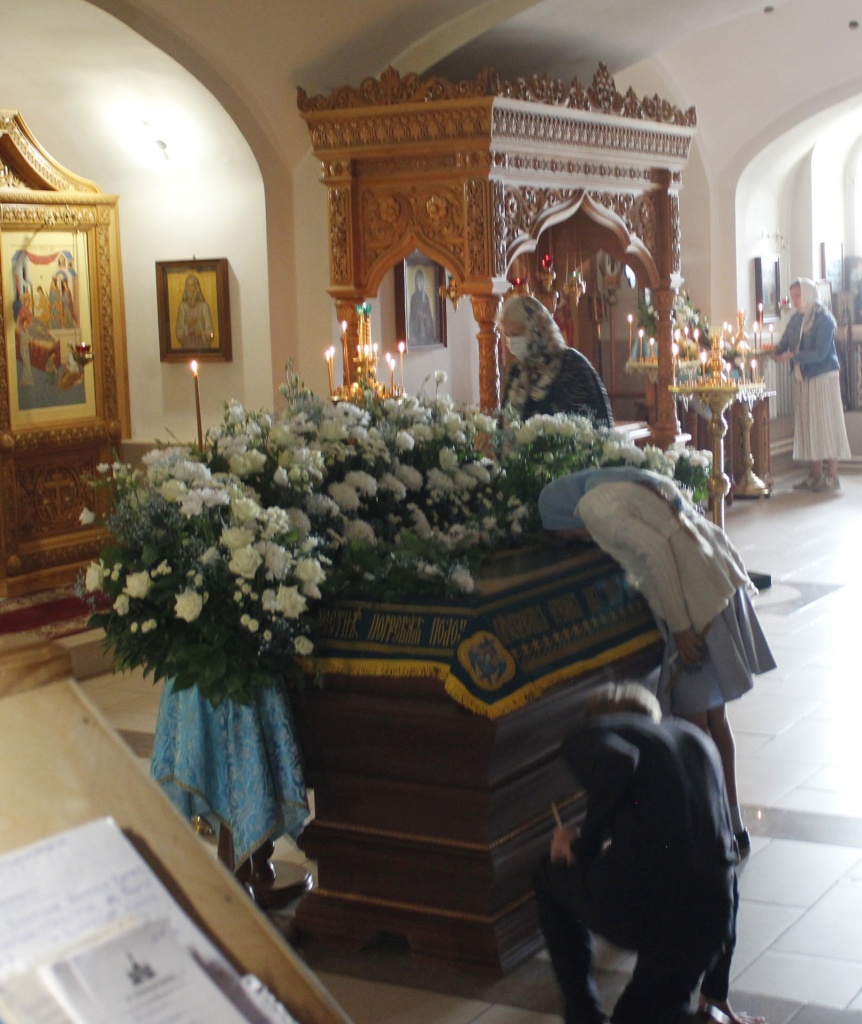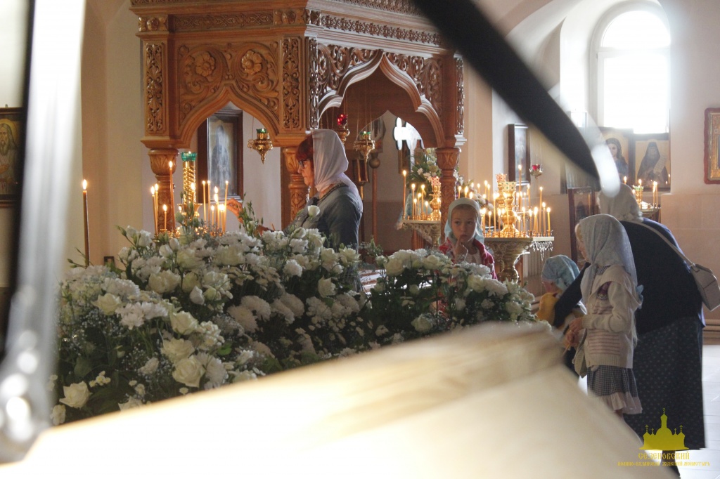 Надежды на небесную помощь Царицы Небесной в земном мире и отсвет будущей вечной жизни создают неповторимую атмосферу этого праздника, когда все печали и скорби растворяются в великой и таинственной радости. Сегодня в Сезеновской обители за божественной Литургией множество молящихся возносили свои сердечные молитвы к Царице Небесной. «Приидите, вернии, ко гробу приступим Божия Матери,и обымем, сердцы и устнами, очесы и лицем чисто прикасающеся…», — такими умилительными словами Святая Церковь призывает всех верующих почтить Небесную Царицу в Ее успении, поклониться Той, чье смирение, чистота и пламенная любовь к Богу сделала возможным Воплощение Слова Божия и спасение людей через смерть и Воскресение Господа Иисуса Христа, рожденного от Пречистой Девы.