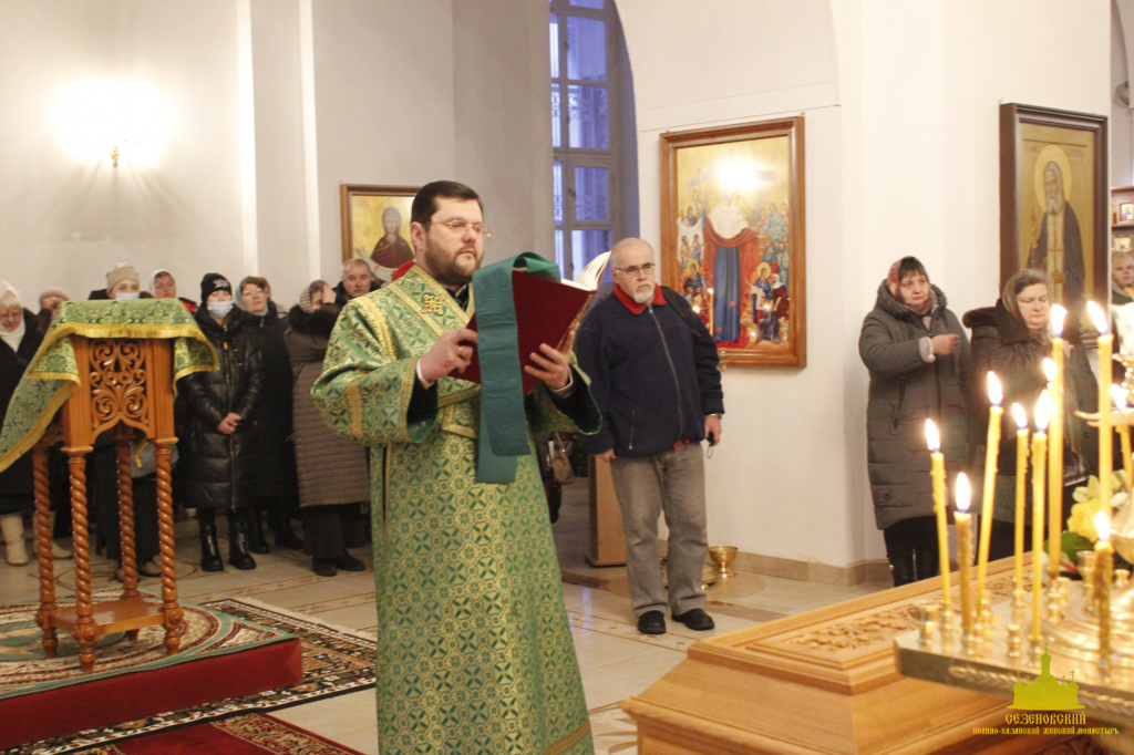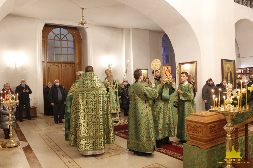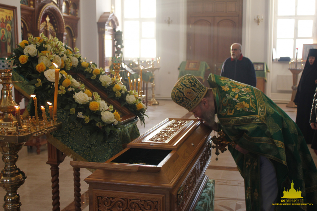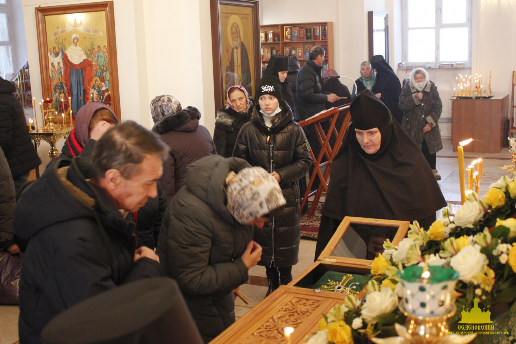 27 декабря, в день памяти преподобного Иоанна, затворника Сезеновского под сводами соборного храма монастыря собрались многочисленные прихожане и гости обители на праздничное богослужение, чтобы почтить память преподобного и разделить радость Божественной Литургии, которую в этот день возглавил Преосвященный Максим епископ Елецкий и Лебедянский. Его Преосвященству сослужили благочинный Лебедянского церковного округа протоиерей Игнатий Кондратюк, клирики монастыря и духовенство епархии.