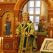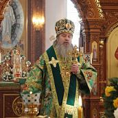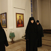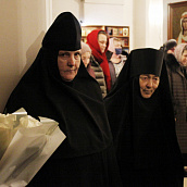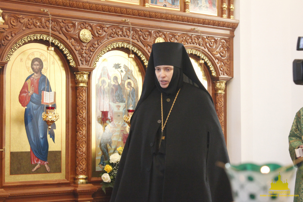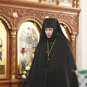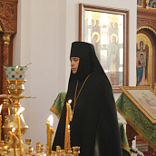 Матушка игумения с любовью приветствовала Владыку и выразила сердечную благодарность Его Преосвященству за великую радость в престольный праздник обители молитвенно участвовать в архиерейском богослужении.