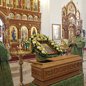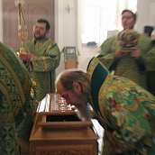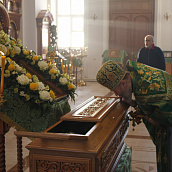 Сегодняшнее богослужение совершалось в едином молитвенном движении душ молящихся, с глубоким молитвенным настроем, и было проникнуто особым чувством духовной близости друг другу и умиленным обращением к Создателю всех в молчании и плаче сердца. Литургия продолжилась праздничным молебном у мощей преподобного с чтением молитвы святому и завершилась проникновенным, сердечным словом Владыки.