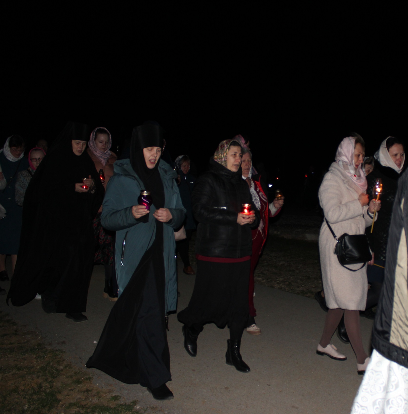 В едином духовном порыве клирики монастыря, хор, прихожане славословили воскресшего Спасителя песнопениями Пасхального канона — этого удивительного творения преподобного Иоанна Дамаскина. Пасхальный канон — центральное песнопение утрени — одного из главных церковных богослужений. Каждую песнь канона начинают петь священнослужители в алтаре, продолжает хор, а в это время священник с трисвещником и Крестом в руках кадит иконы и молящихся, приветствуя их восклицанием: «Христос воскресе!». Каждения и приветствия, совершаемые священнослужителями, напоминают о многократных явлениях Воскресшего Господа Своим ученикам и об их радости при виде Спасителя. Некоторые священнослужители даже ускоряют движение в этот момент богослужения, чтобы показать, как апостолы бежали, торопясь разнести весть о воскресении Христа.
