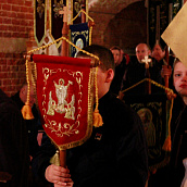 По заамвонной молитве, согласно Устава, было совершено освящение артоса. В молитве есть такие слова: «Ибо и мы, раби Твои, в честь и славу, и в воспоминание славнаго Воскресения тогожде Сына Твоего Господа нашего Иисуса Христа, Имже от вечныя работы вражия, и от адовых нерешимых уз разрешение, свободу и преведение улучихом, пред Твоим величеством ныне во всесветлый сей, Преславный и спасительный день Пасхи, сей приносим…» То есть мы приносим артос в дар Богу как символ Светлого Воскресения Христова. И освящение его на самой главной службе в году, когда и сами небеса отверсты, когда Спаситель находится среди нас, а Церковь небесная соединяется с Церковью земной в едином пасхальном славословии Господу за искупление-исцеление человечества, говорит нам о том, что артос – великая святыня, связанная с Воскресением Христовым. Потому относиться нужно к ней очень трепетно и бережно. Раздробление артоса будет совершаться в субботу Светлой седмицы.