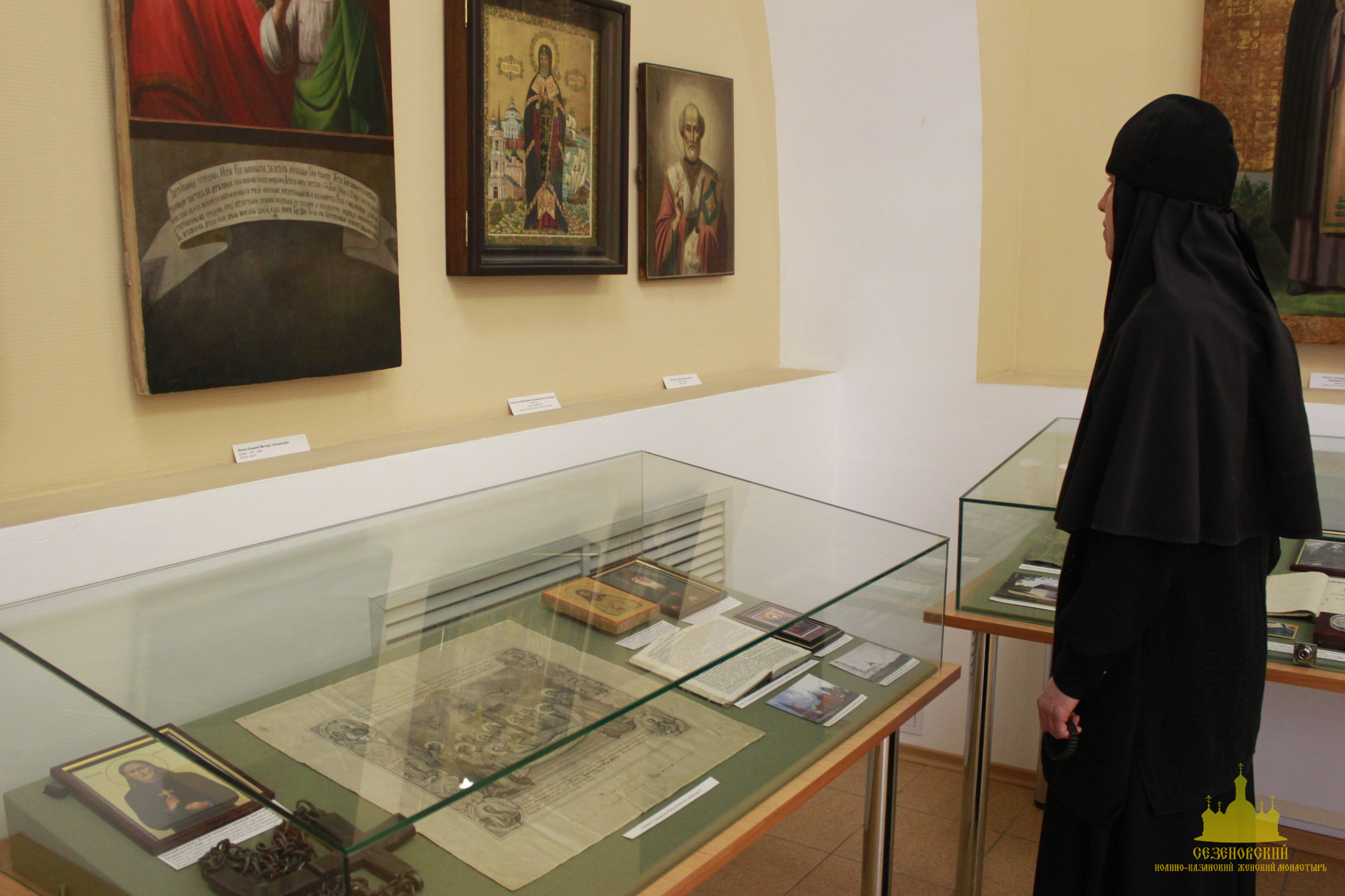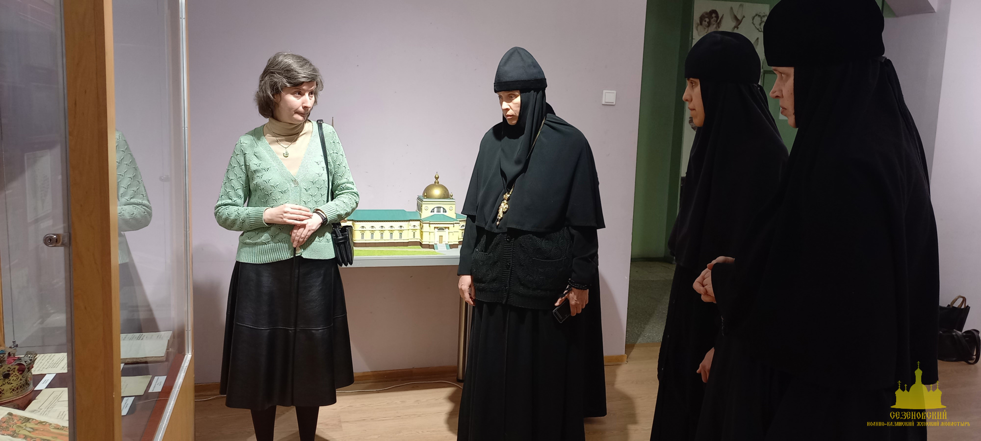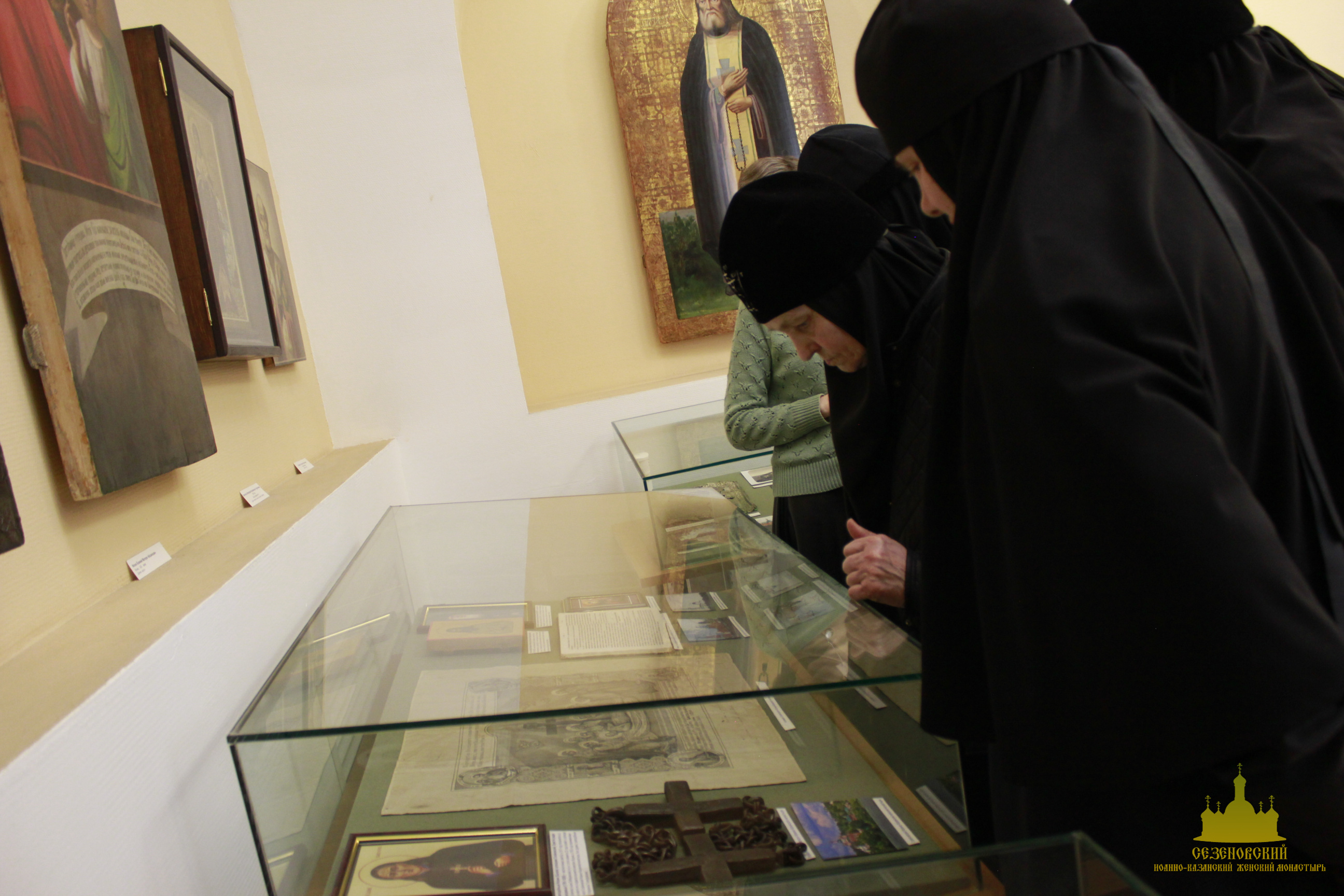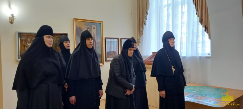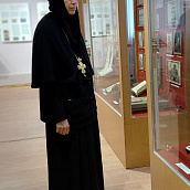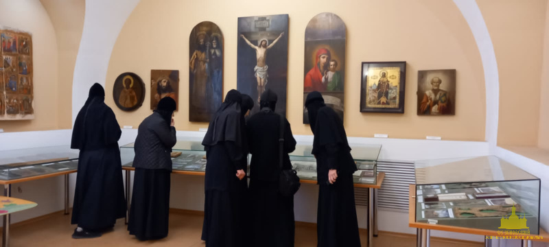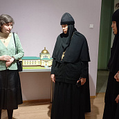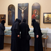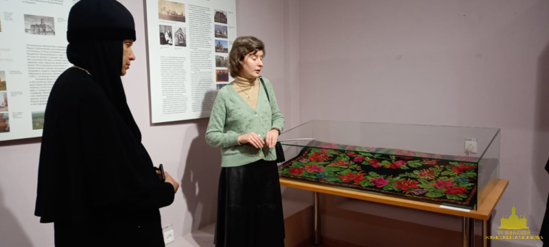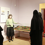 После окончания экскурсии сестры обители познакомились с экспозицией «Русь Святая», в которой помимо коллекции иконописи музея представлены антиминс Сезеновского монастыря, освященный Тамбовским епископом Палладием (Раевым), и подлинные вериги, которые, по предположению сотрудников музея, носила одна из дореволюционных насельниц Сезеновского монастыря.
