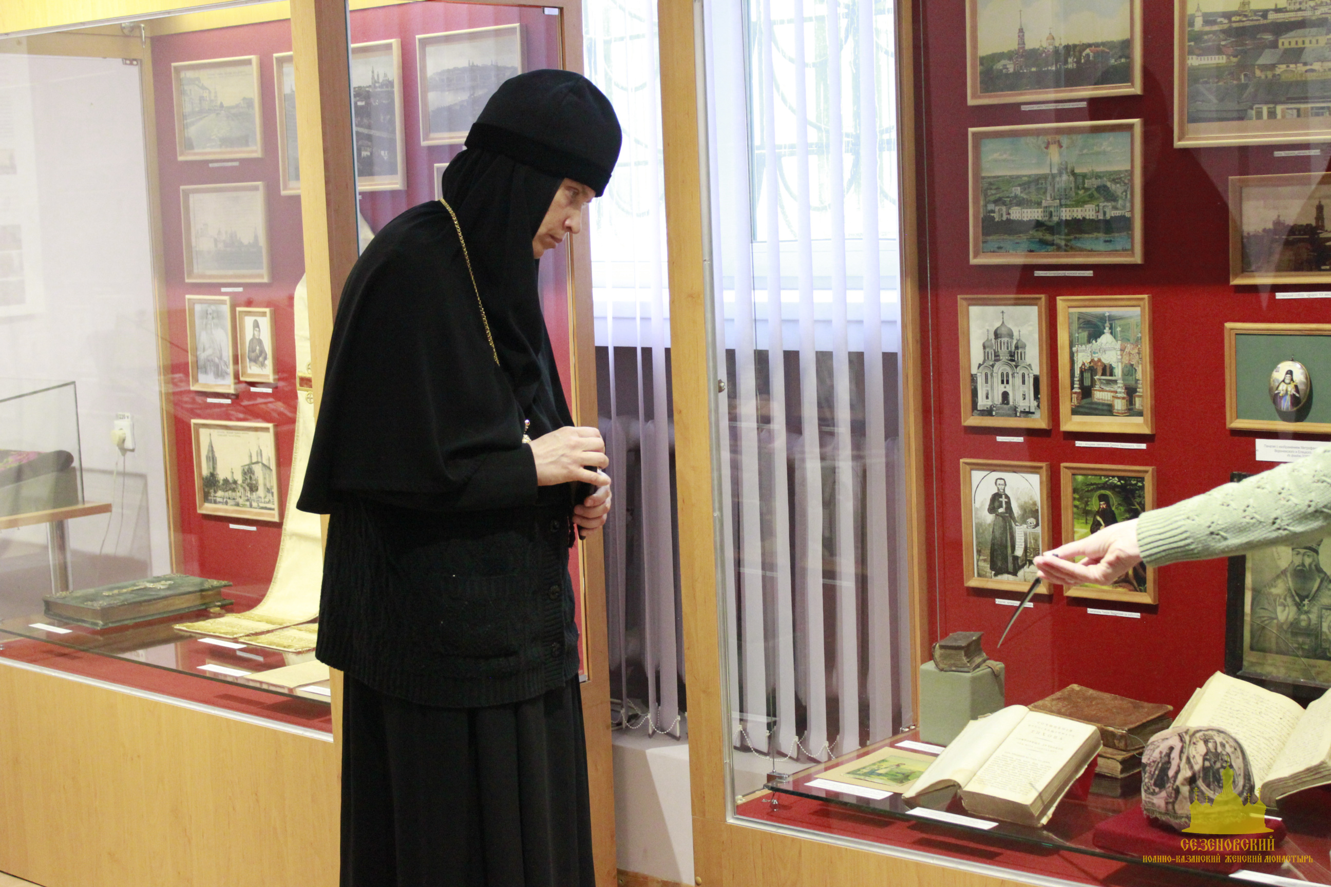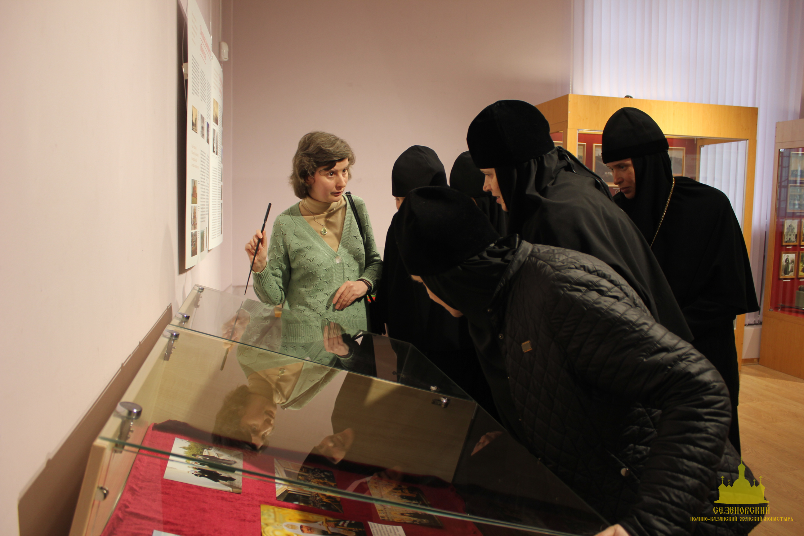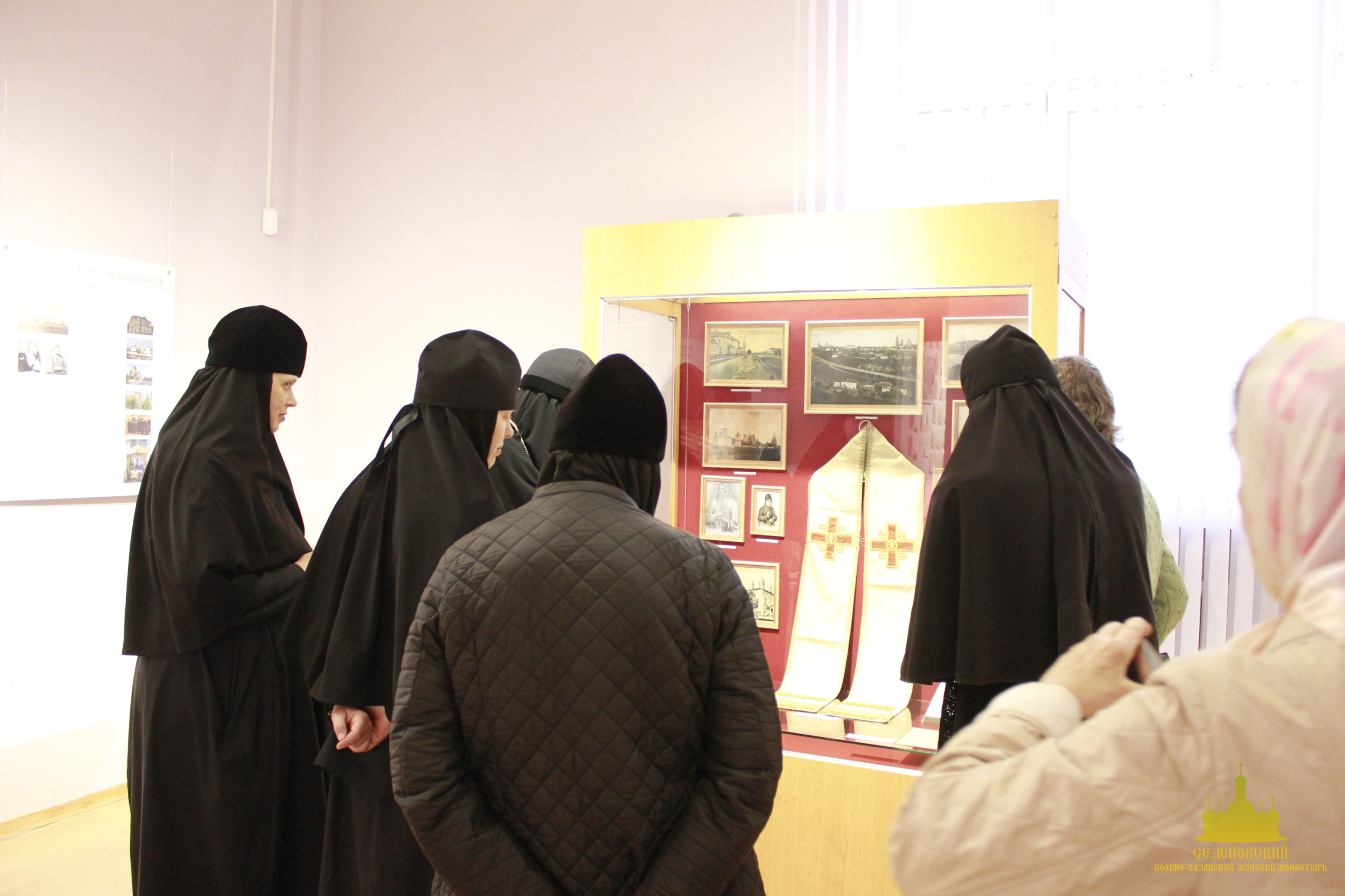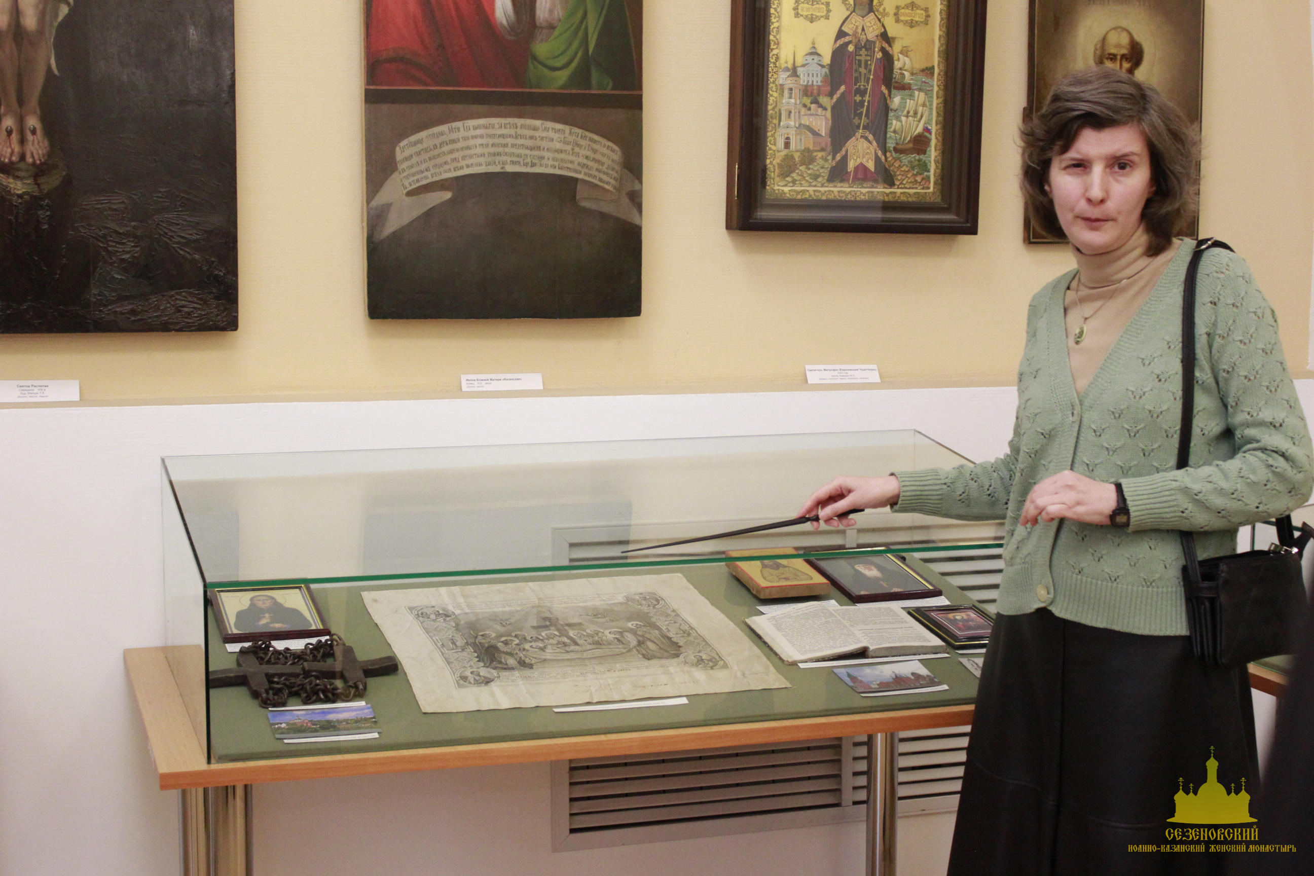 После окончания экскурсии сестры обители познакомились с экспозицией «Русь Святая», в которой помимо коллекции иконописи музея представлены антиминс Сезеновского монастыря, освященный Тамбовским епископом Палладием (Раевым), и подлинные вериги, которые, по предположению сотрудников музея, носила одна из дореволюционных насельниц Сезеновского монастыря.