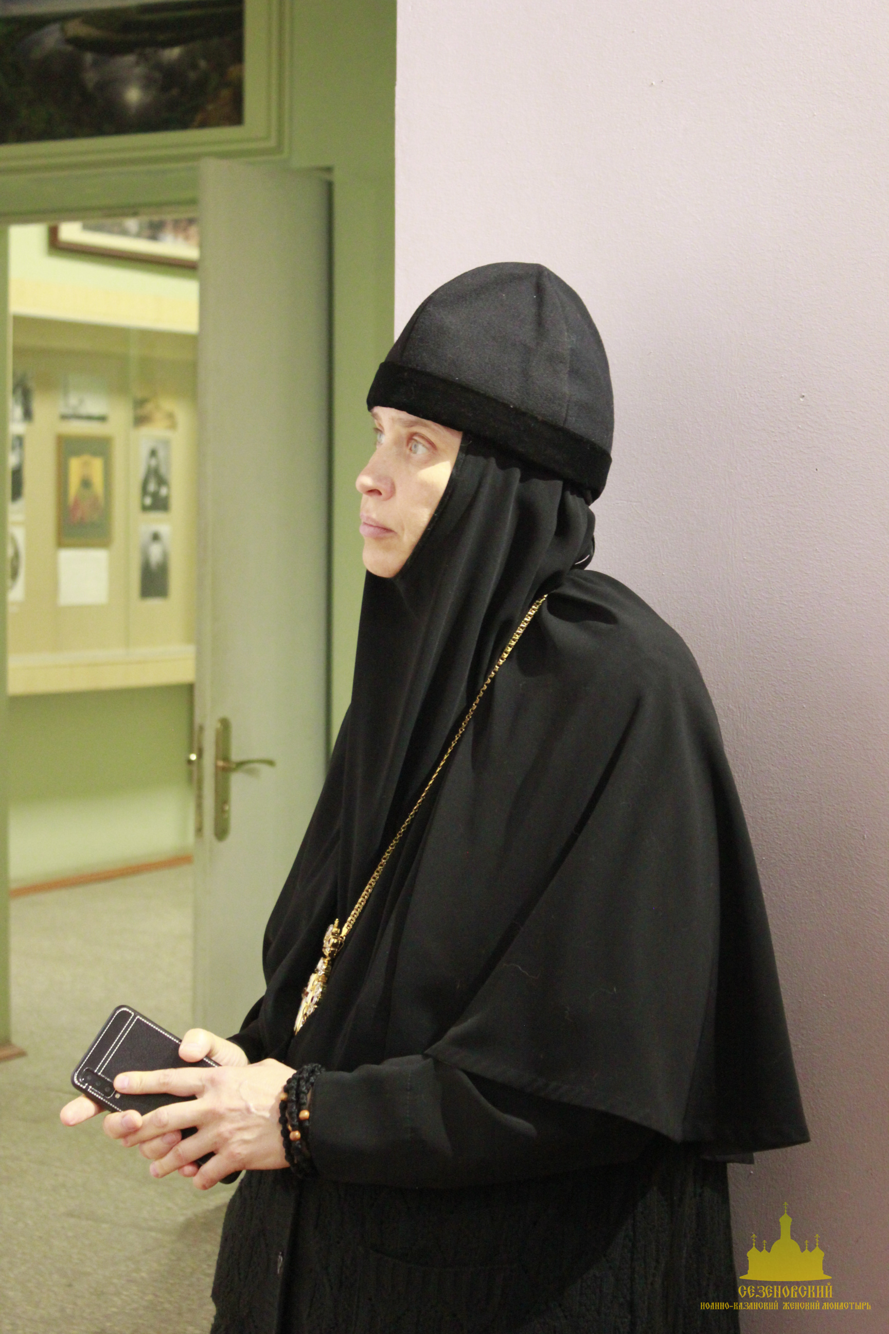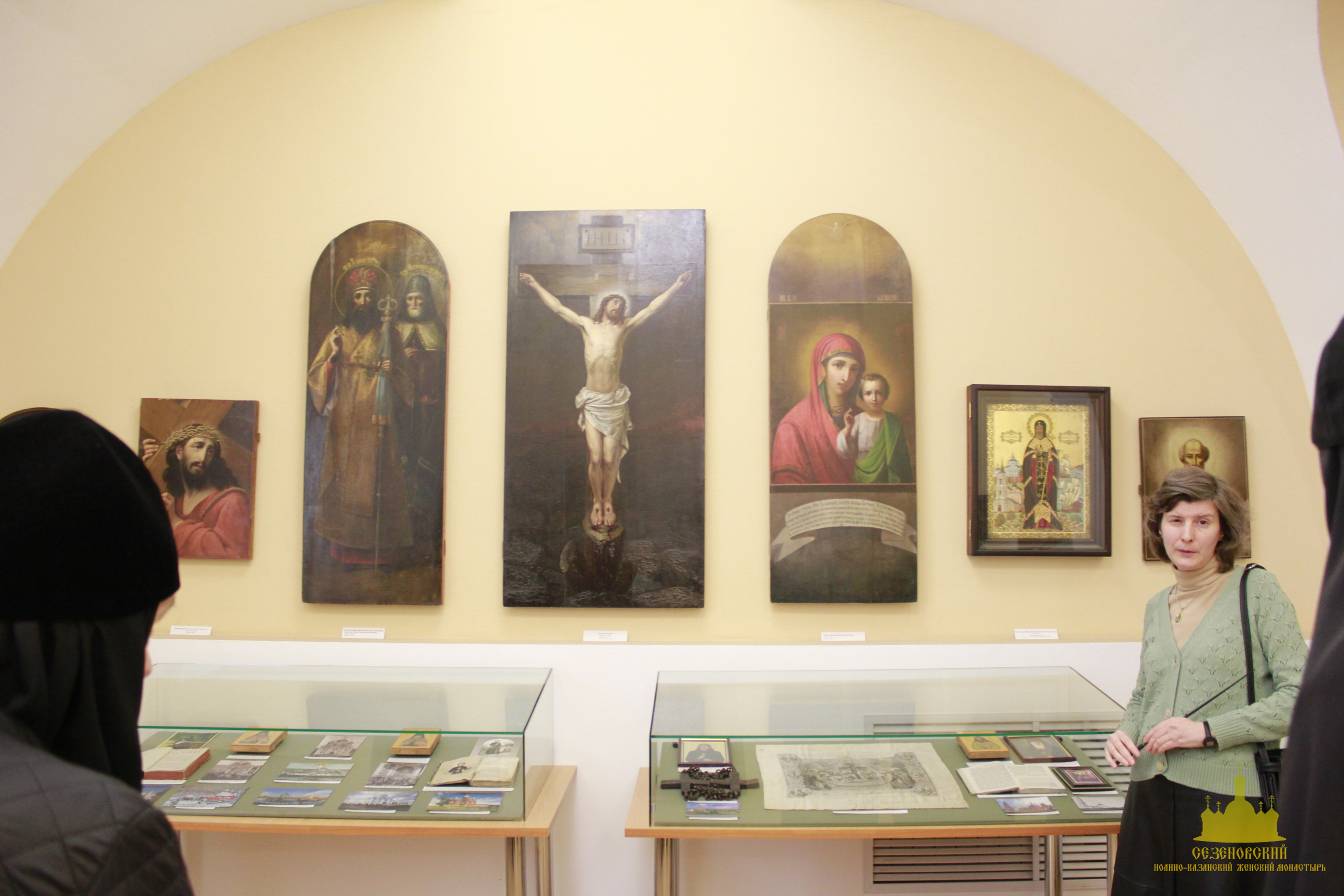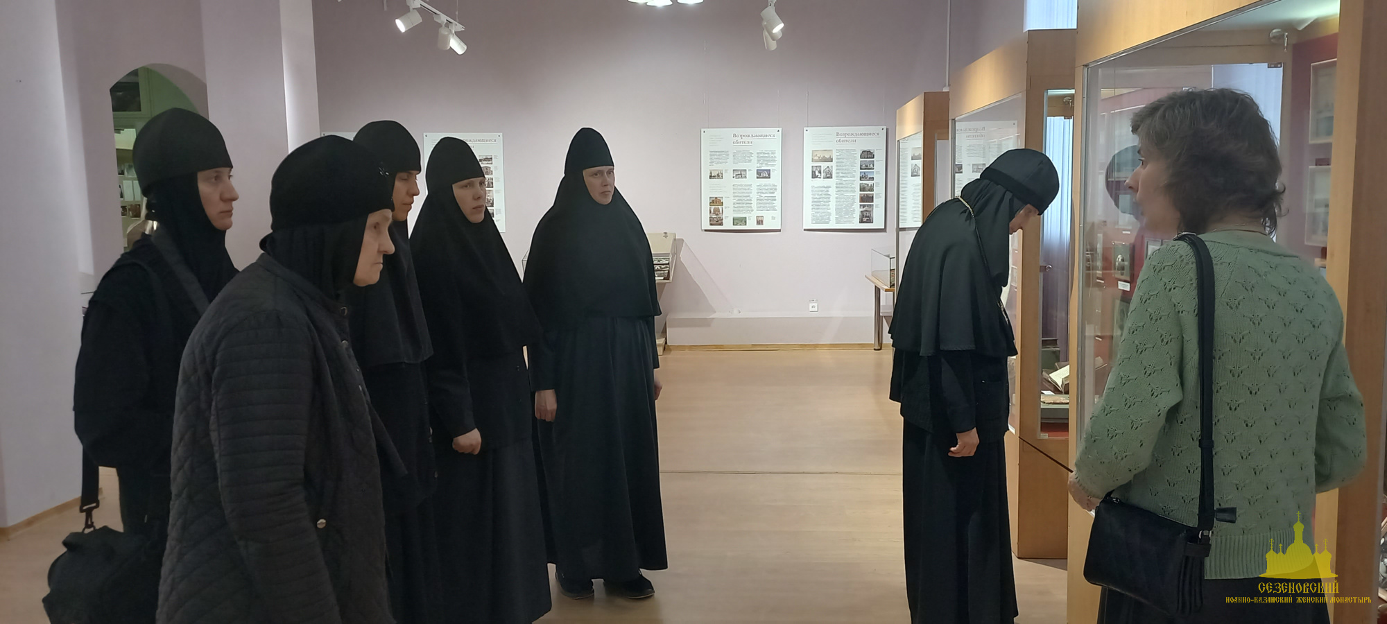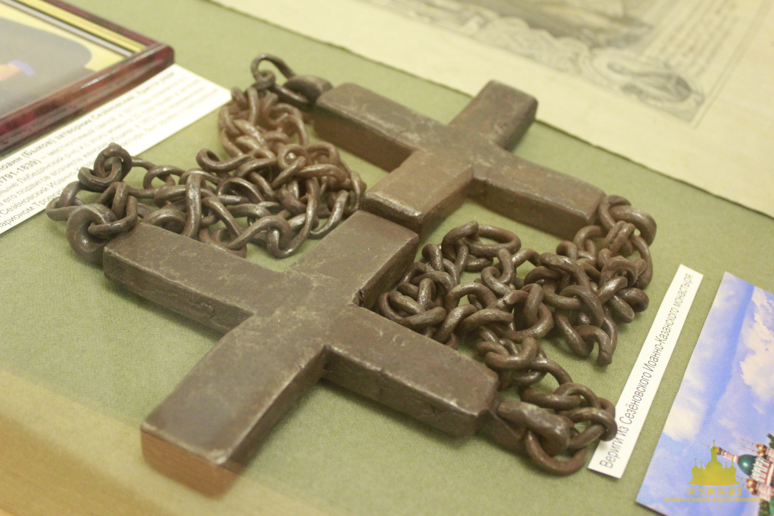 После окончания экскурсии сестры обители познакомились с экспозицией «Русь Святая», в которой помимо коллекции иконописи музея представлены антиминс Сезеновского монастыря, освященный Тамбовским епископом Палладием (Раевым), и подлинные вериги, которые, по предположению сотрудников музея, носила одна из дореволюционных насельниц Сезеновского монастыря.