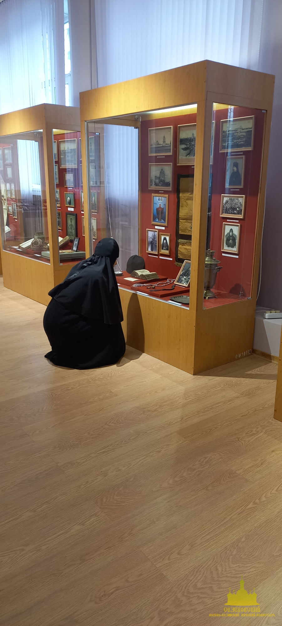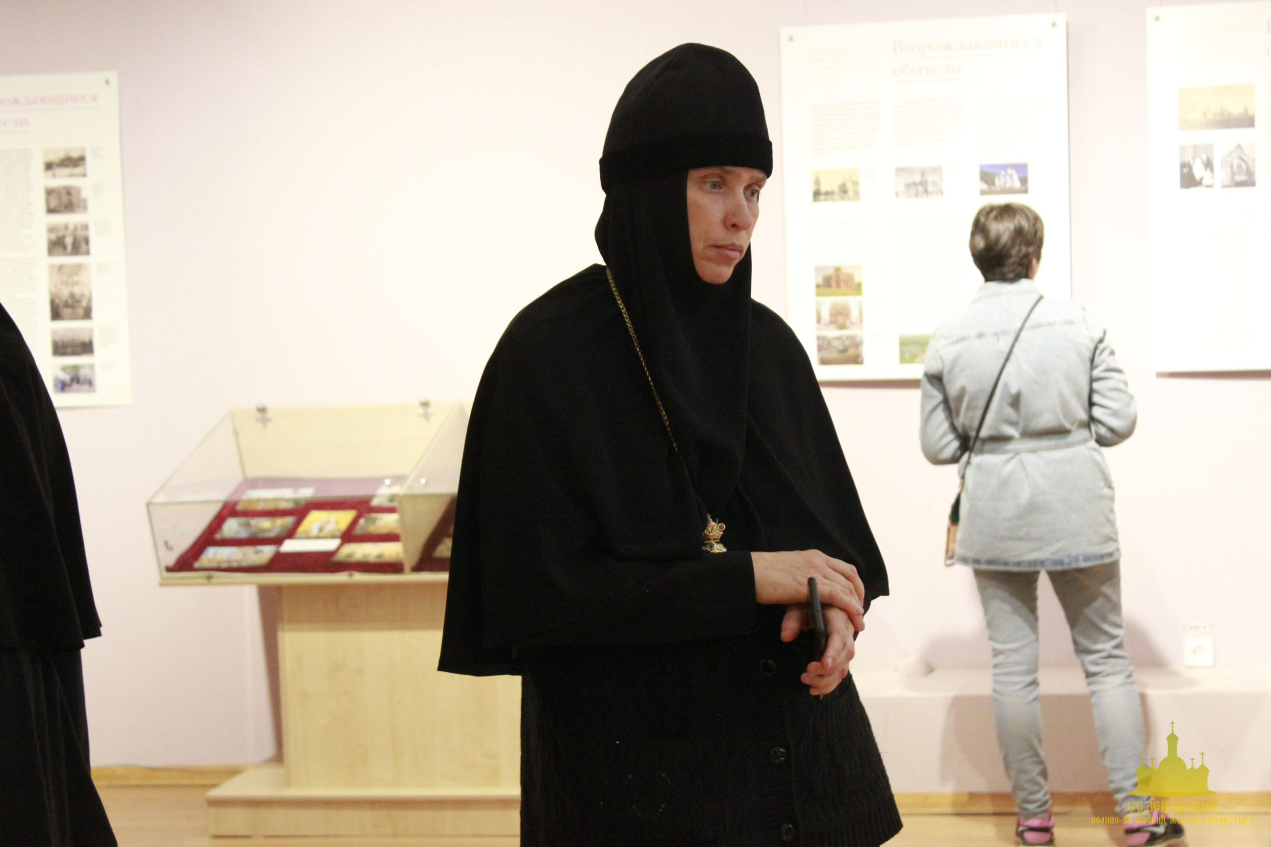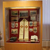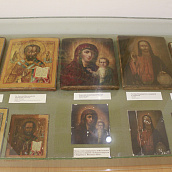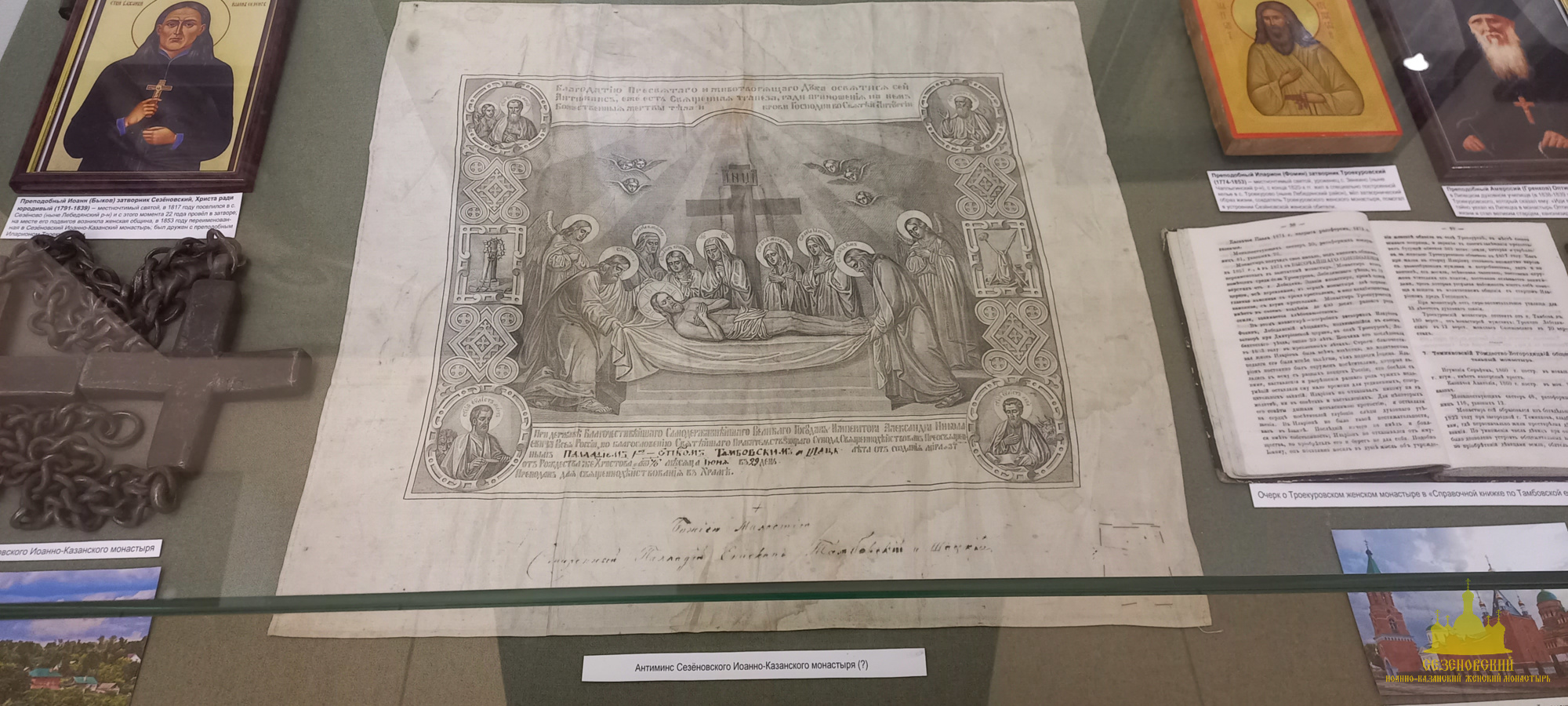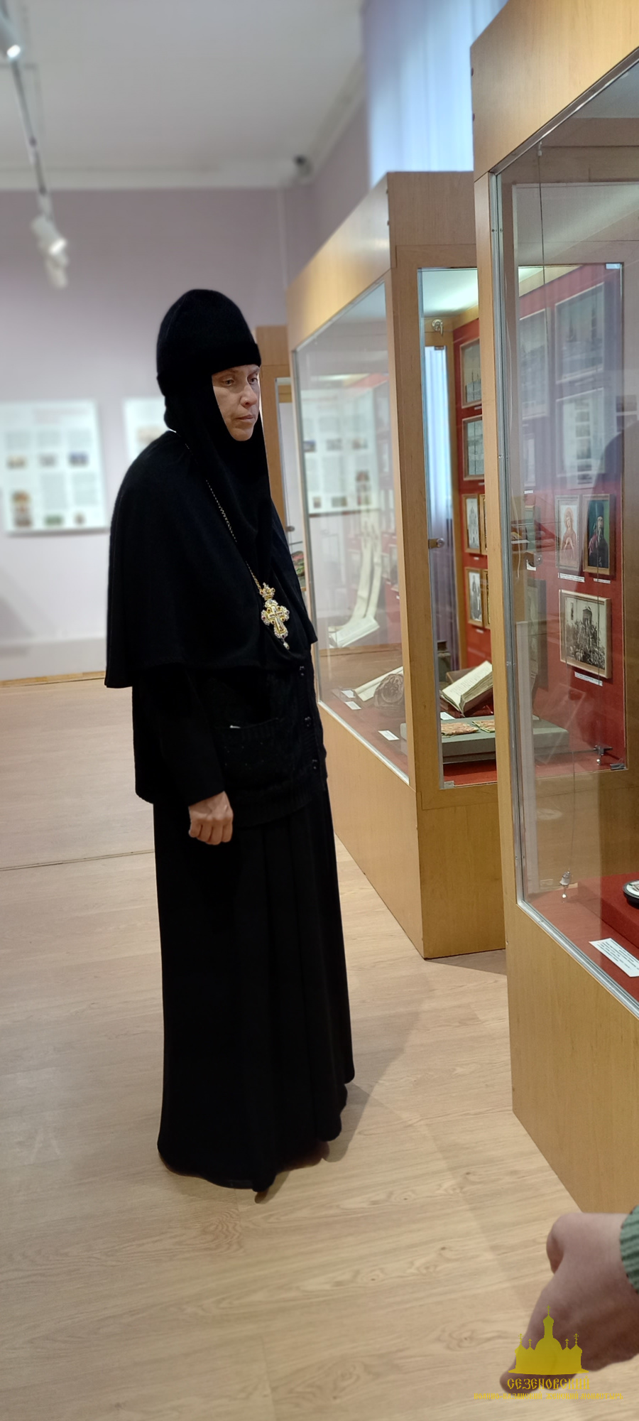 После окончания экскурсии сестры обители познакомились с экспозицией «Русь Святая», в которой помимо коллекции иконописи музея представлены антиминс Сезеновского монастыря, освященный Тамбовским епископом Палладием (Раевым), и подлинные вериги, которые, по предположению сотрудников музея, носила одна из дореволюционных насельниц Сезеновского монастыря.