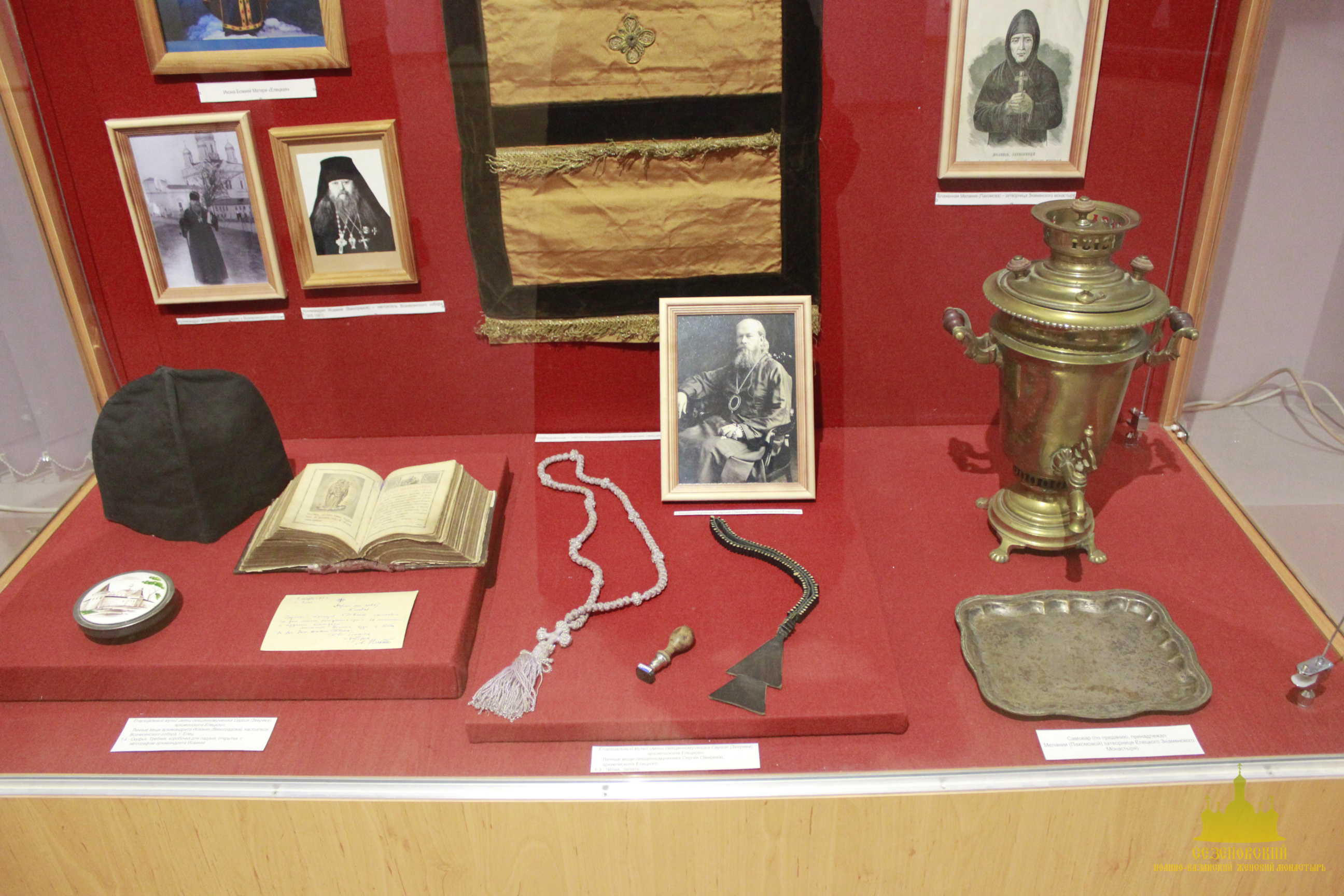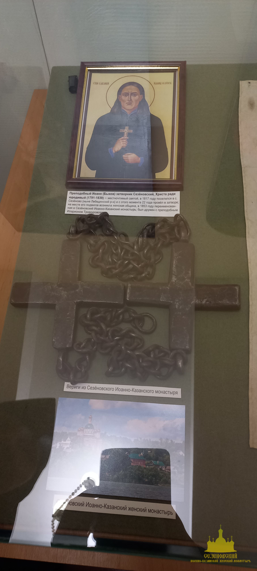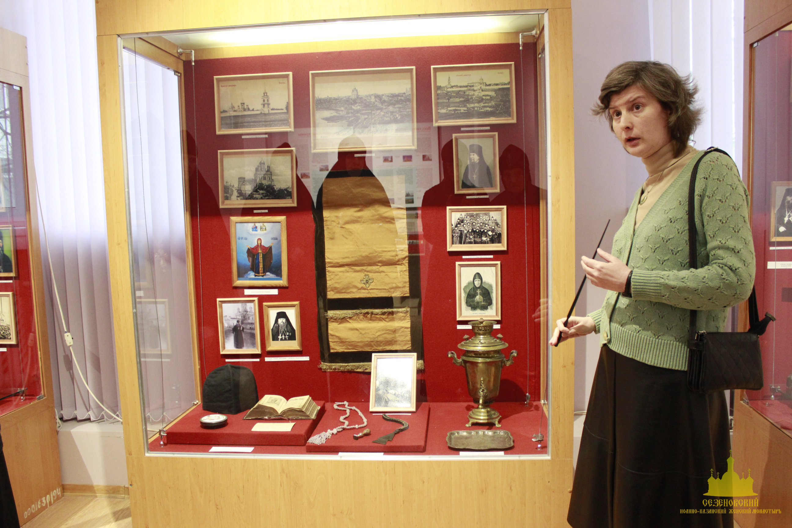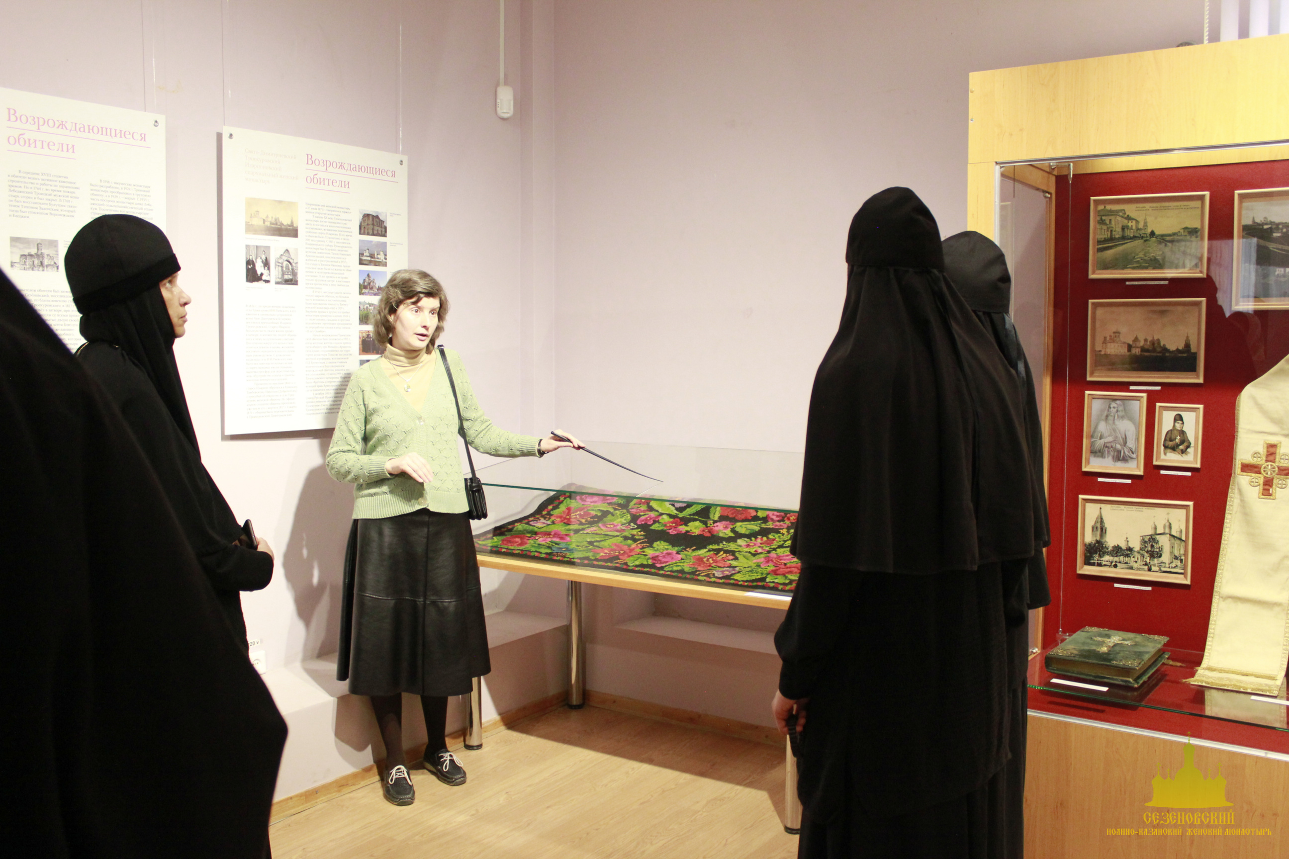 Особый интерес во время экскурсии вызвали: фарфоровая кружечка с портретом блаженного Иоанна Сезеновского (такие кружечки изготавливали для паломников и продавали на ярмарках, проводившихся в начале XX века в дни памяти блаженного Иоанна), журнал «Тамбовские епархиальные ведомости» за 1880 год, на страницах которого рассказывается о посещении Сезеновского монастыря Тамбовским епископом Палладием (Ганкевичем), и замечательный ковер, сделанный бывшей послушницей Сезеновского монастыря. Именно такие ковры с тёмным фоном и ярким цветочным орнаментом в начале XX века ткали в Сезеновском монастыре на специальных ткацких станах и продавали не только в обители, но и в Москве в лавке Сезеновского монастыря, находившейся в торговых рядах на Красной площади.