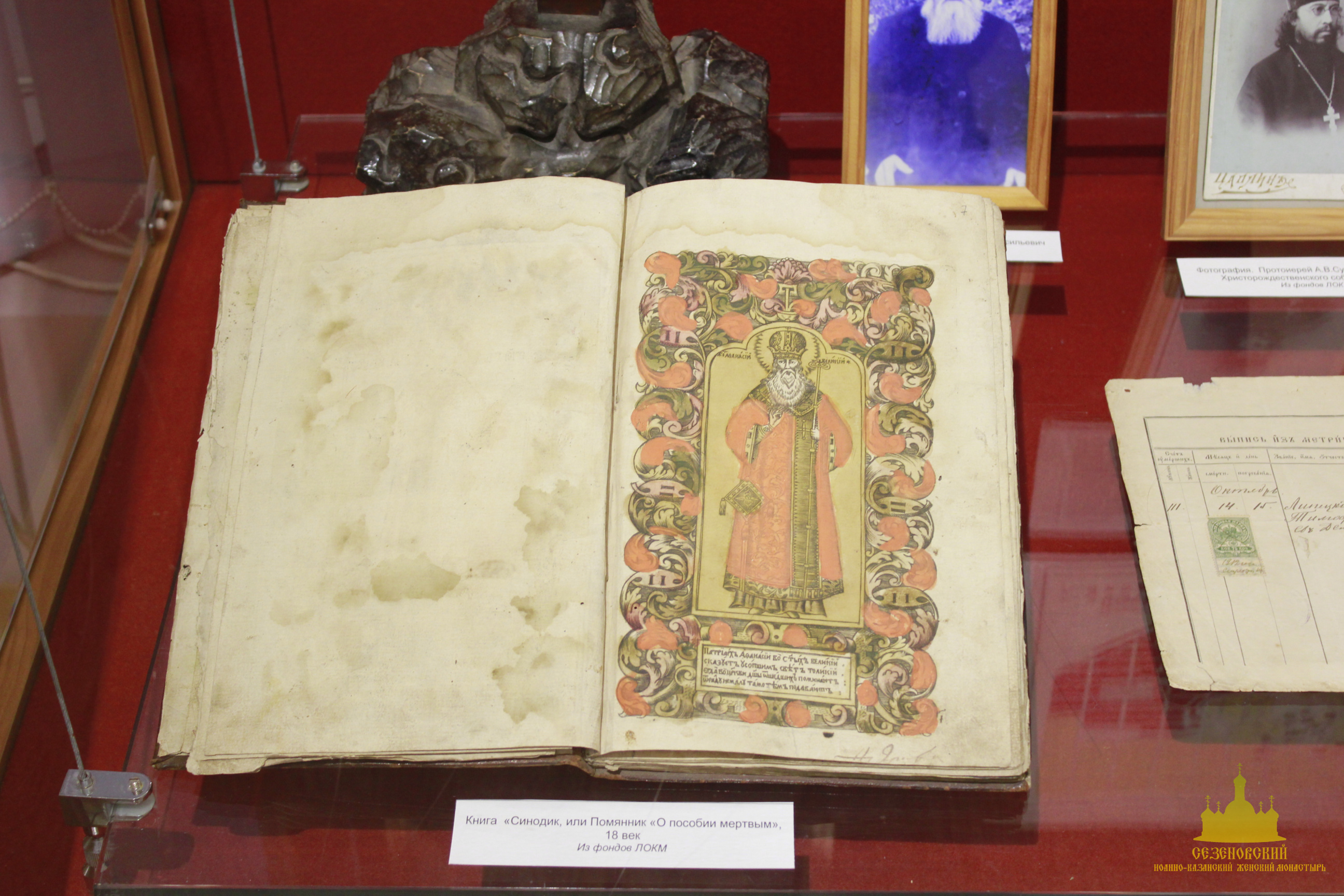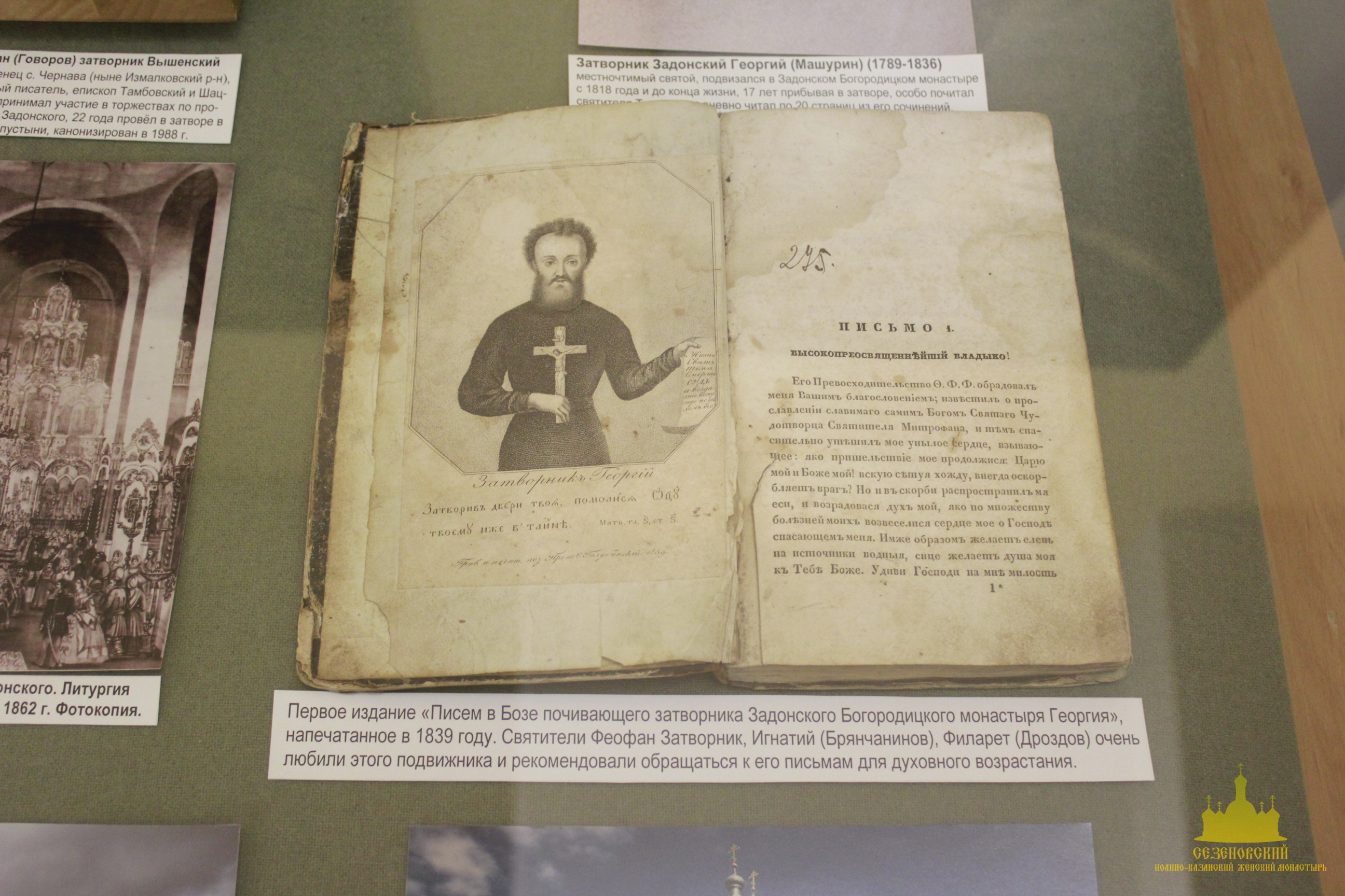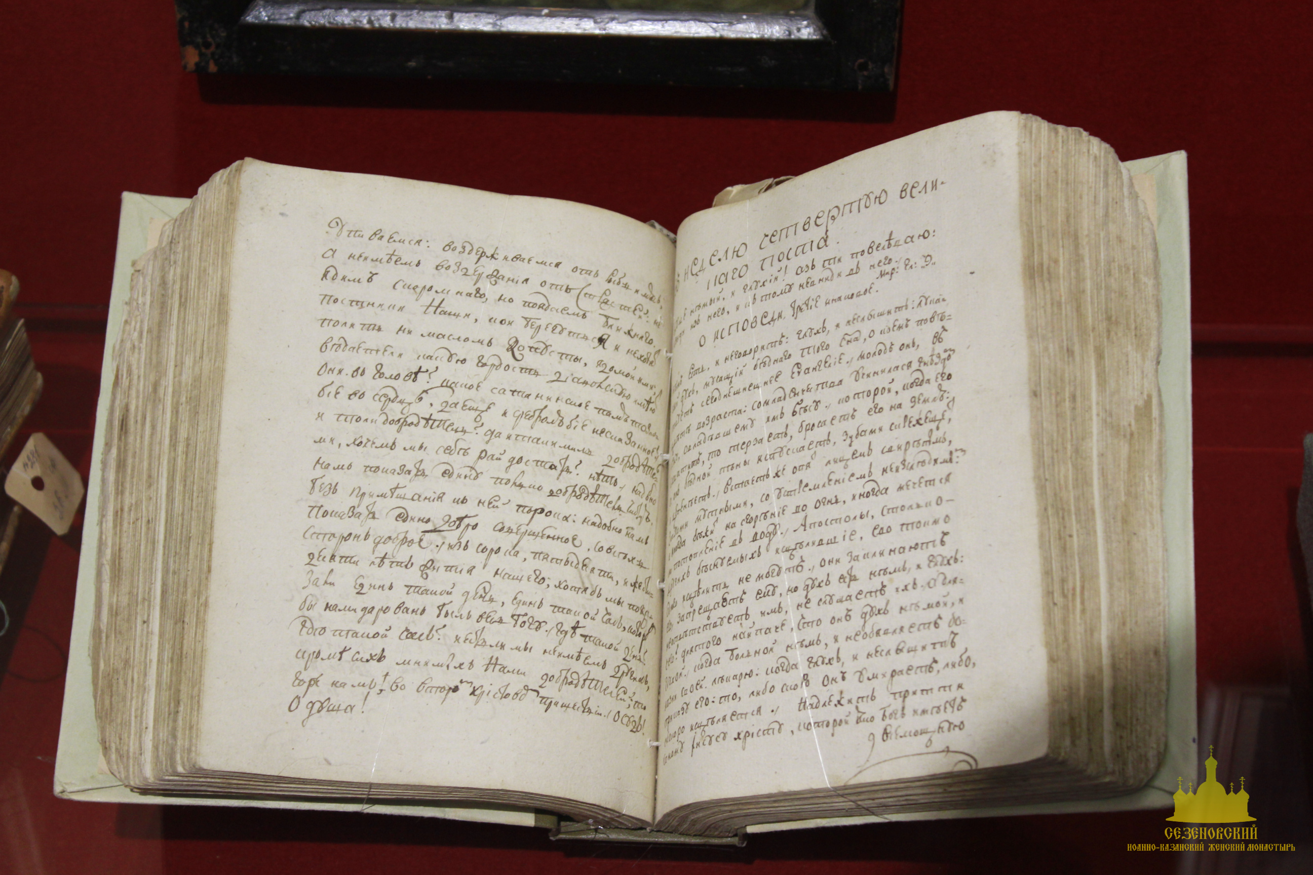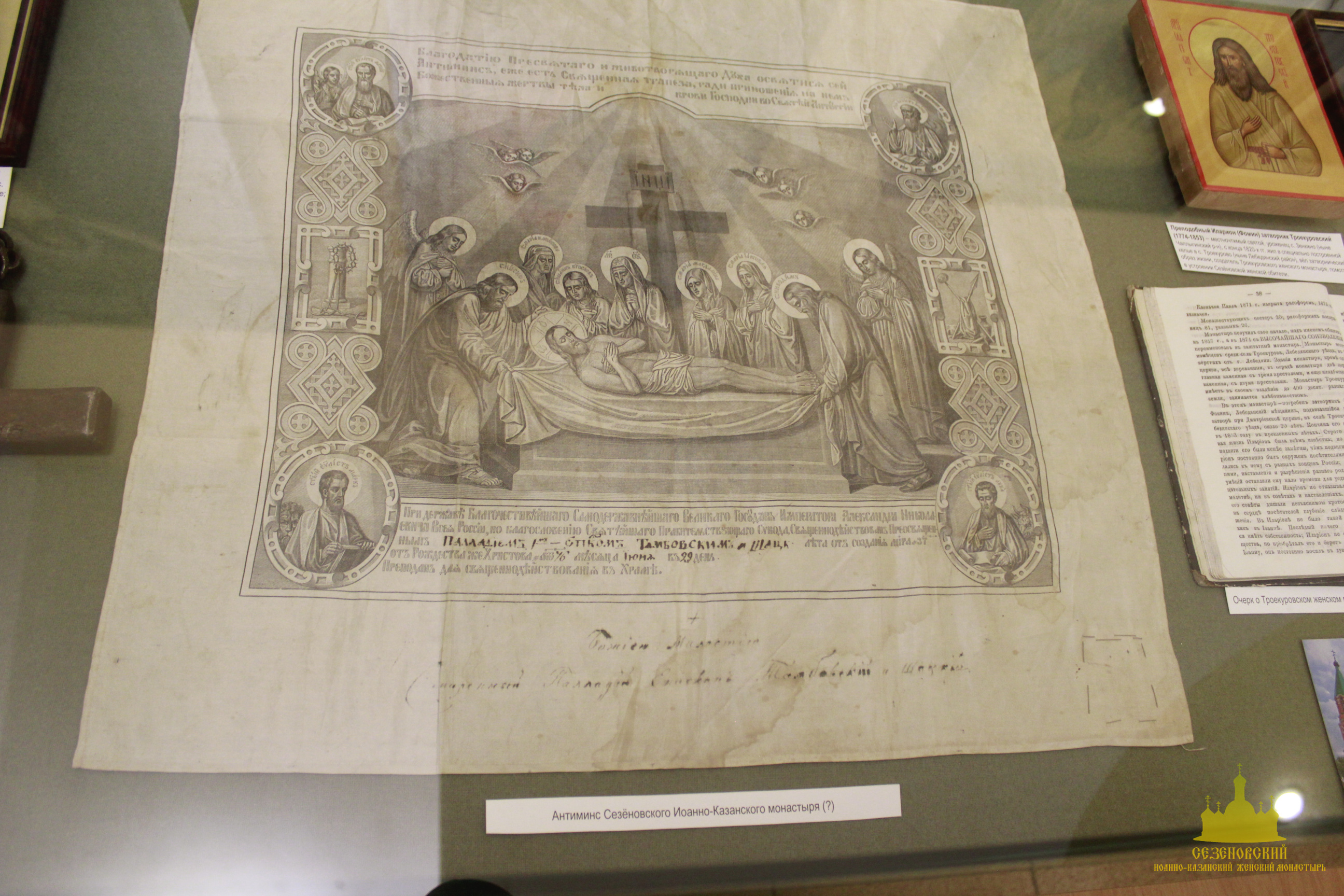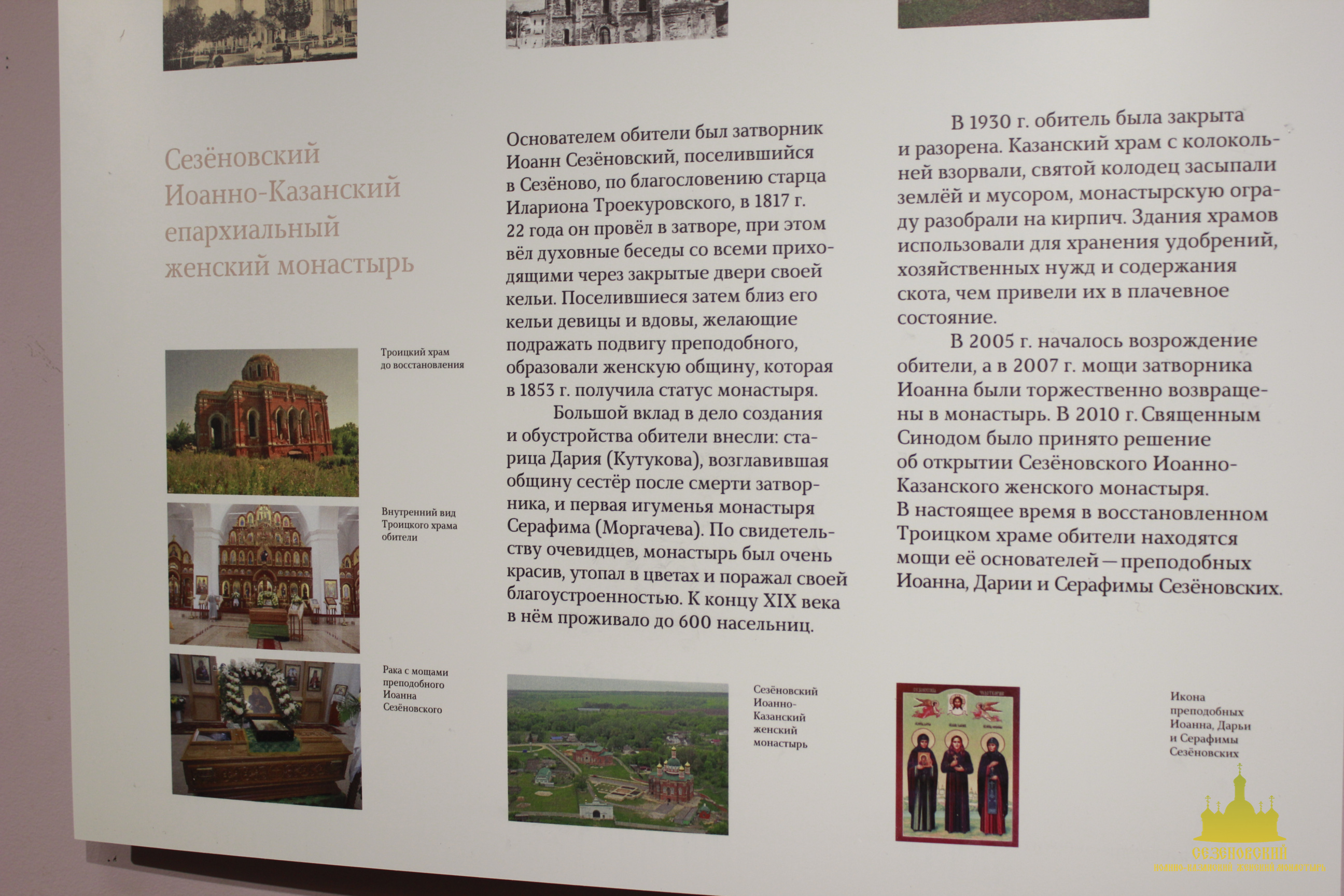 Особый интерес во время экскурсии вызвали: фарфоровая кружечка с портретом блаженного Иоанна Сезеновского (такие кружечки изготавливали для паломников и продавали на ярмарках, проводившихся в начале XX века в дни памяти блаженного Иоанна), журнал «Тамбовские епархиальные ведомости» за 1880 год, на страницах которого рассказывается о посещении Сезеновского монастыря Тамбовским епископом Палладием (Ганкевичем), и замечательный ковер, сделанный бывшей послушницей Сезеновского монастыря. Именно такие ковры с тёмным фоном и ярким цветочным орнаментом в начале XX века ткали в Сезеновском монастыре на специальных ткацких станах и продавали не только в обители, но и в Москве в лавке Сезеновского монастыря, находившейся в торговых рядах на Красной площади.