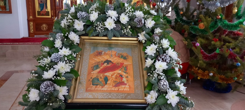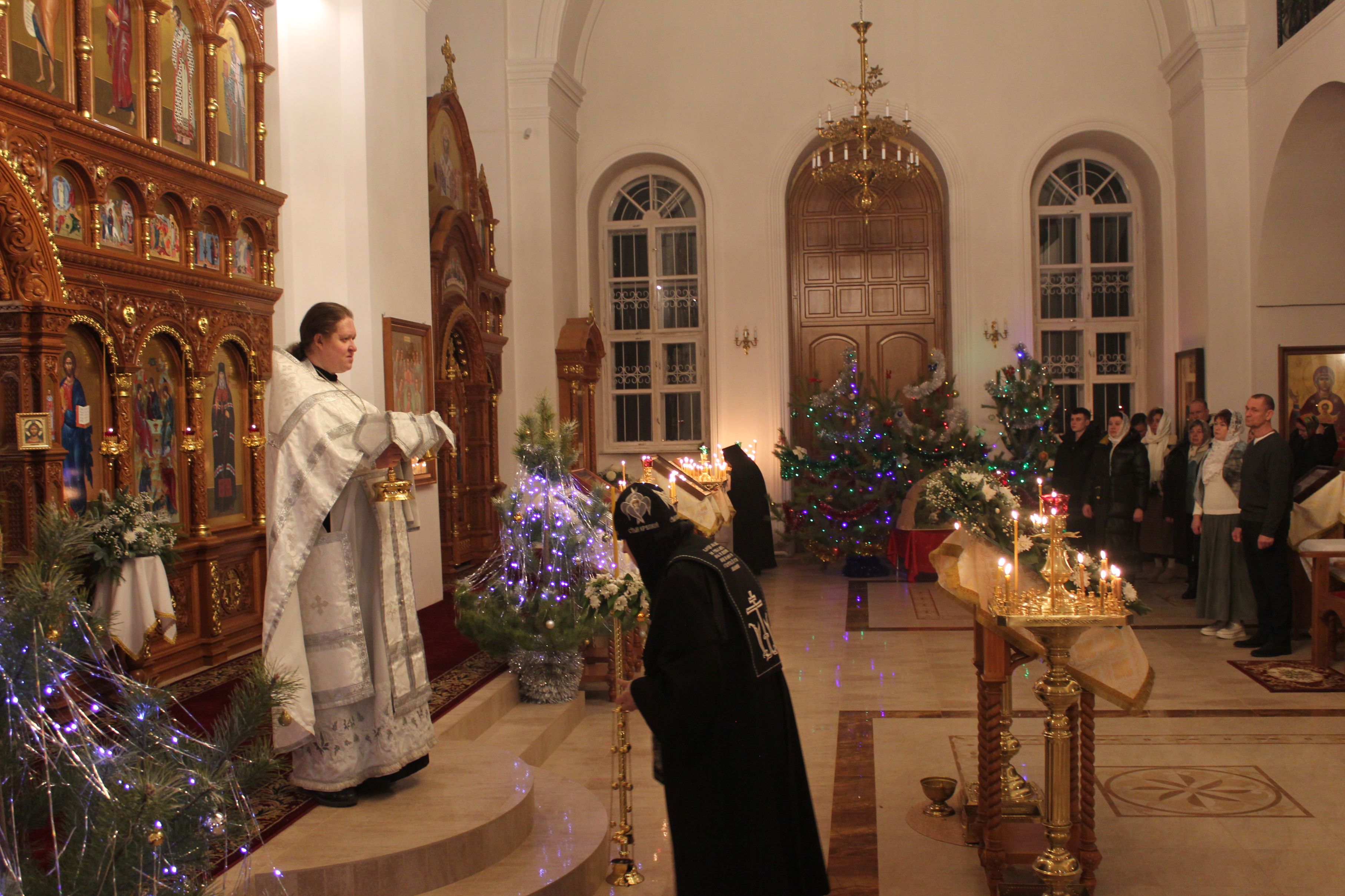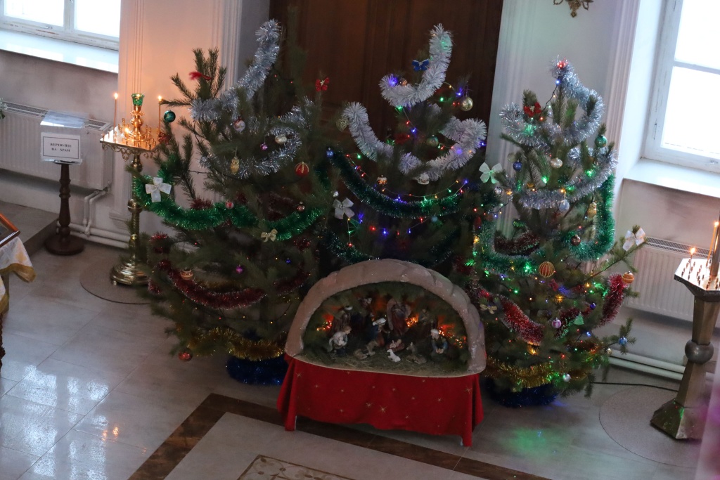 Сестры и прихожане Сезеновской обители с великим сердечным ликованием встретили Рождество Христово. Ночное рождественское богослужение проходило в Троицком соборе обители, украшенном к празднику елями с огоньками, живыми цветами и, конечно, вертепом.