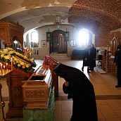 Накануне праздника в обители состоялось повечерие и утреня с полиелеем. В сам день торжества прошла Божественная Литургия и славление у святых мощей преподобной. На богослужениях Матушка игумения и сестры с верою обращались к небесной покровительнице с надеждой на ее молитвенную помощь в дальнейшей жизни обители: "В болезнях постнических терпящи, прияла еси благодать, душевные и телесные болезни очищати, мати честная, Серафимо, и нечистые духи прогоняти духом, и всем скорбящим предстательствовати, темже твоими молитвами, проси исцеления всем, и вели́я ми́лости".