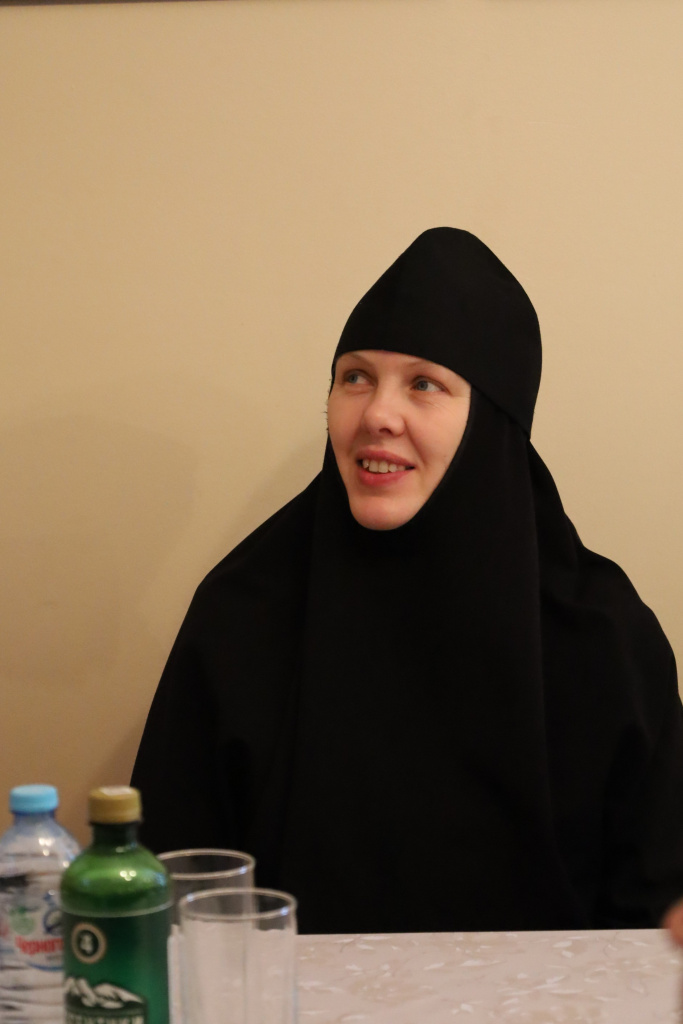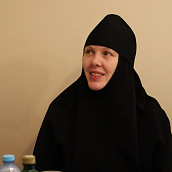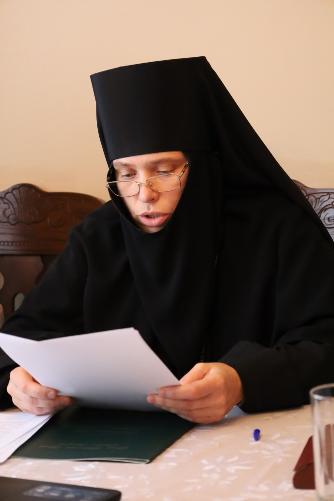От Елецкой епархии с докладом "Почитание в Сезеновской обители ее устроителей: преподобных затворника Иоанна, старицы Дарии и игумении Серафимы" выступила игумения Феофания (Проценко), настоятельница Сезеновского Иоанно-Казанского епархиального женского монастыря.