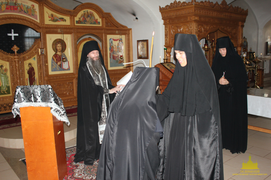 Совершив все последование пострига, иеромонах Иоанн поздравил Матушку игумению с пополнением сестричества монастыря - с новым воином Христовым, а новопостриженной сестре пожелал до своей кончины соблюдать те обещания, которые она принесла перед Святым Алтарем, поздравив ее с «началом иного жития».