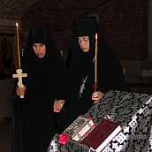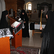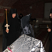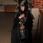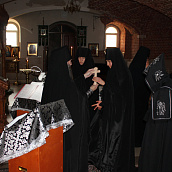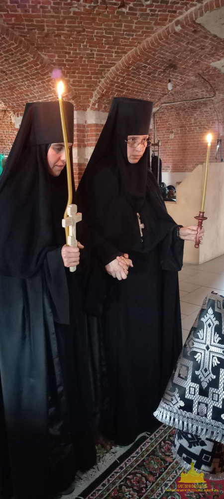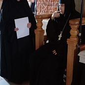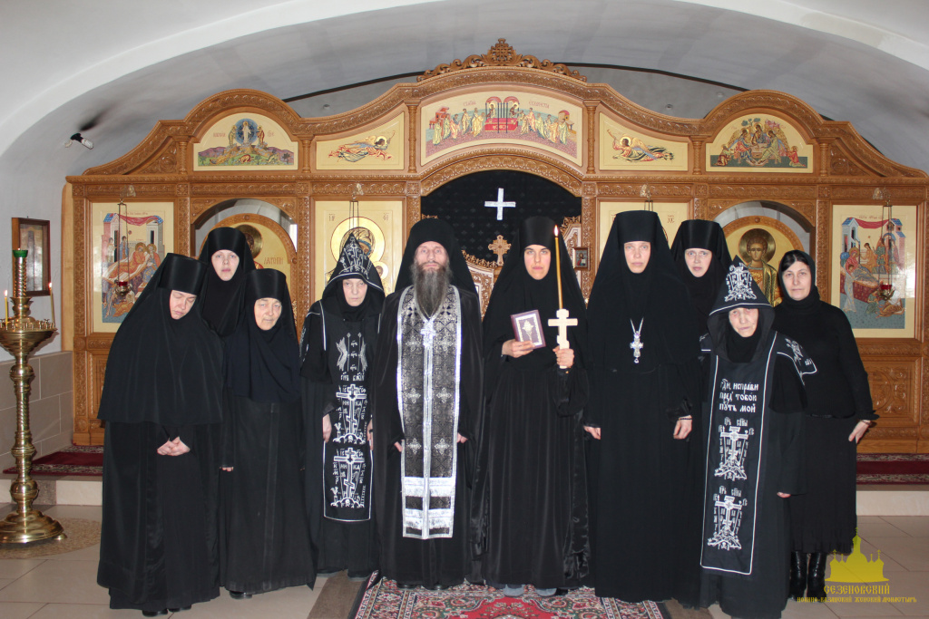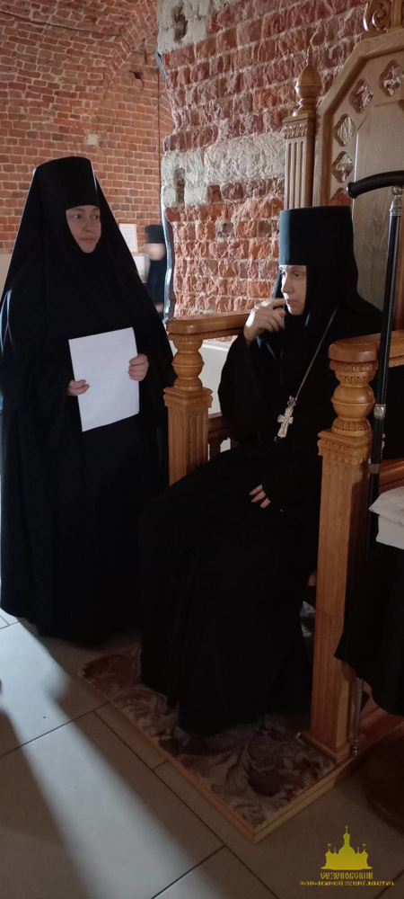 По окончании последования монахиня была вручена духовной матери – настоятельнице монастыря игумении Феофании (Проценко).