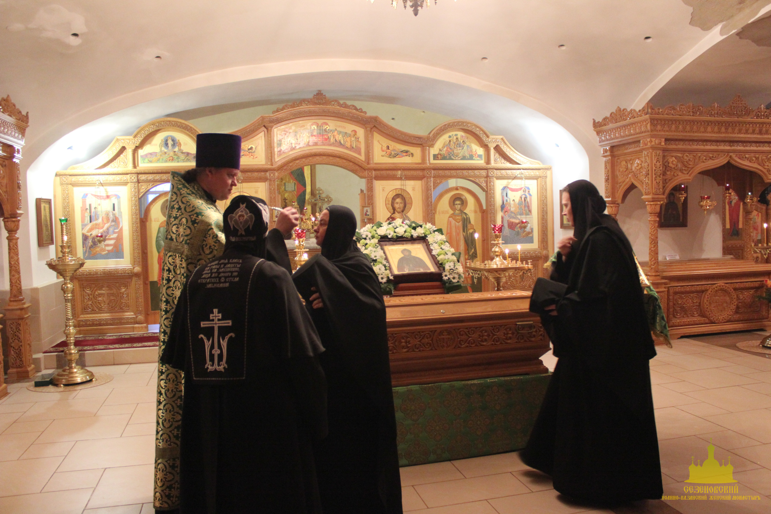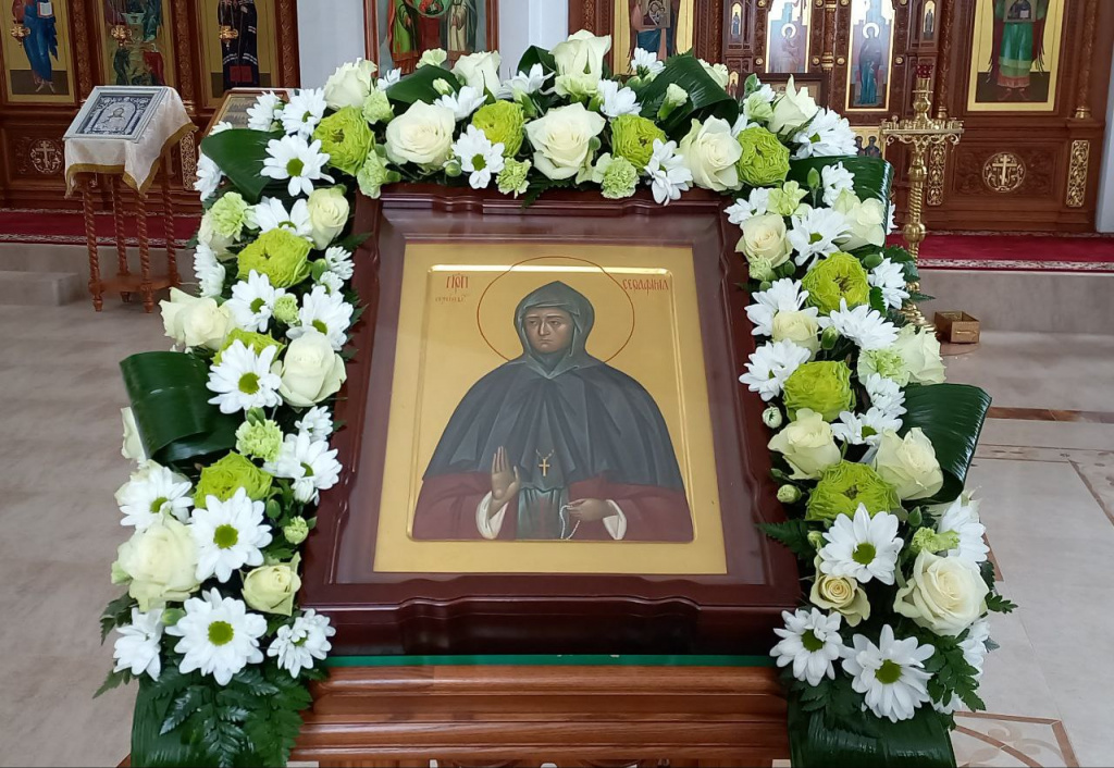 По монастырской традиции, в этот день по окончании Литургии, совершалось славление преподобной Серафиме вместе с чтением молитвы перед ея ракой с честными мощами и величанием святой.