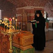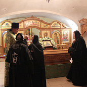 Вечером, 25 февраля, в обители было отслужено торжественное всенощное бдение с литией. Утром - акафист перед мощами преподобной Серафимы, затем Божественная литургия.