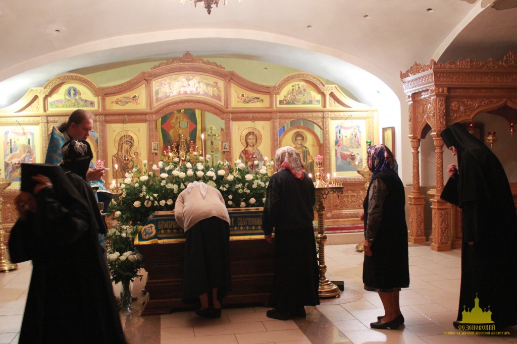 Сегодня священнослужители, сестры обители во главе с матушкой игуменией Феофанией в благоговейном пении статий и стихов на святое Преставление Пресвятой Богородицы как апостолы прославляли чудо рождения и успения Пречистой, ее беспримерной святости, смирения и послушания воле Божией, воплощения Ее благословенного Сына, Спасителя мира: