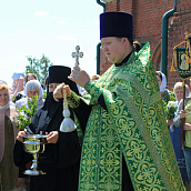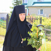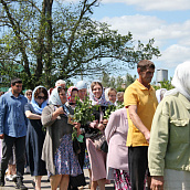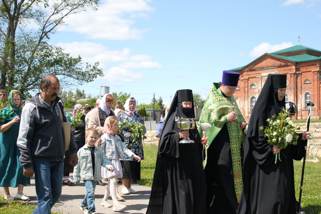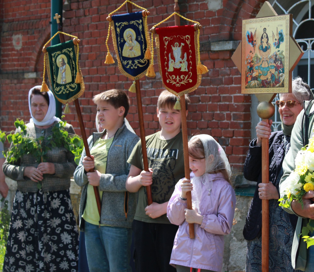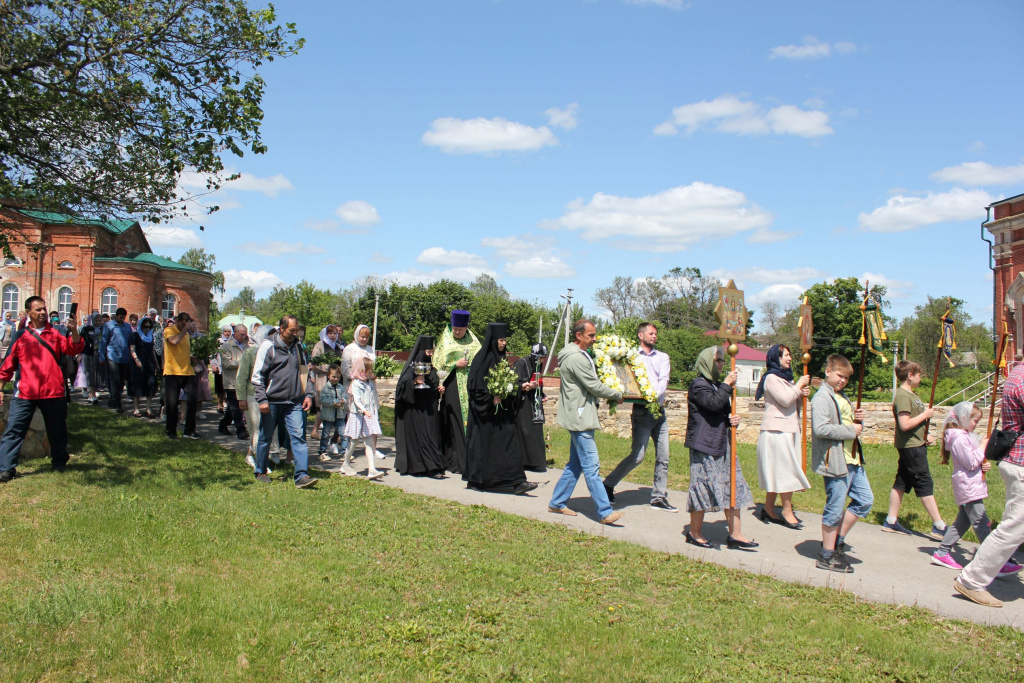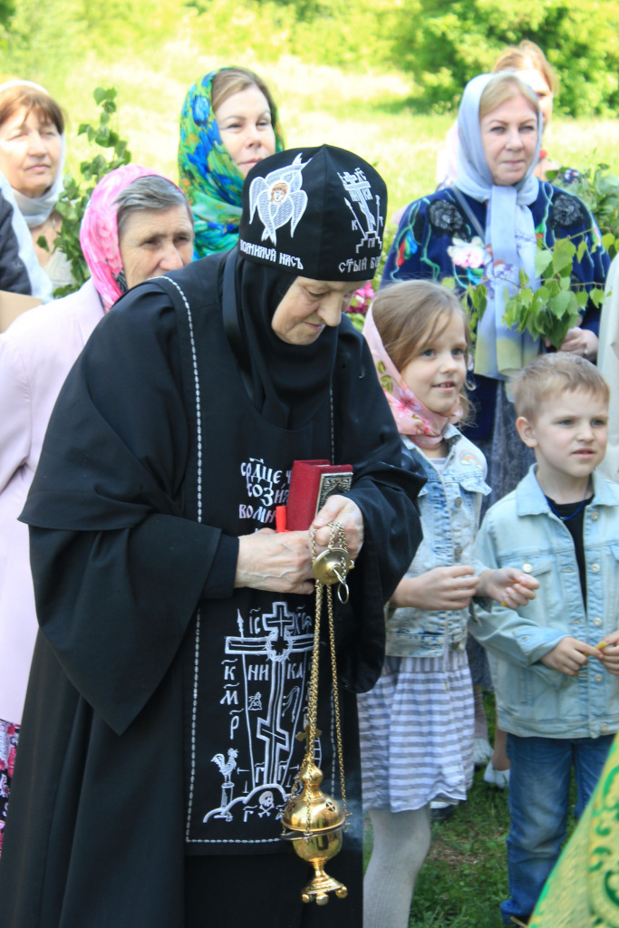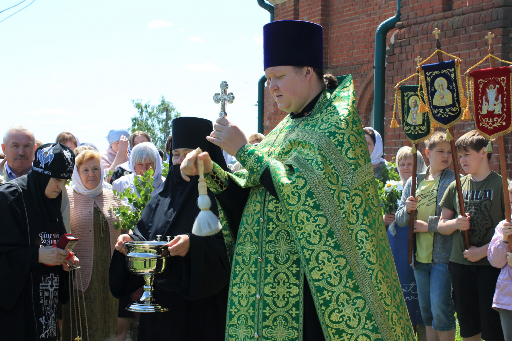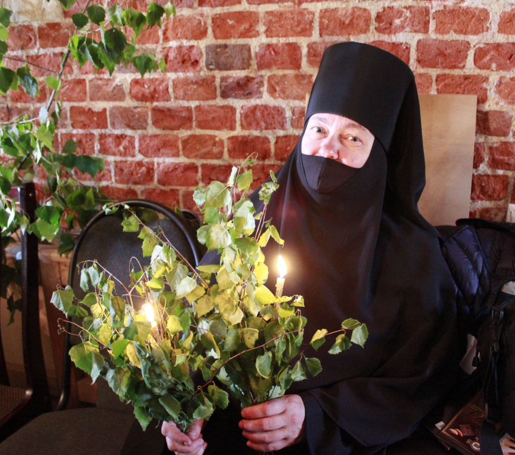Необычайно красивым и радостным был крестный ход, прославляющий Святую Троицу – под колокольный звон клирики, сестры и прихожане с радостной молитвой встречали Праздник с букетами из березовых ветвей.