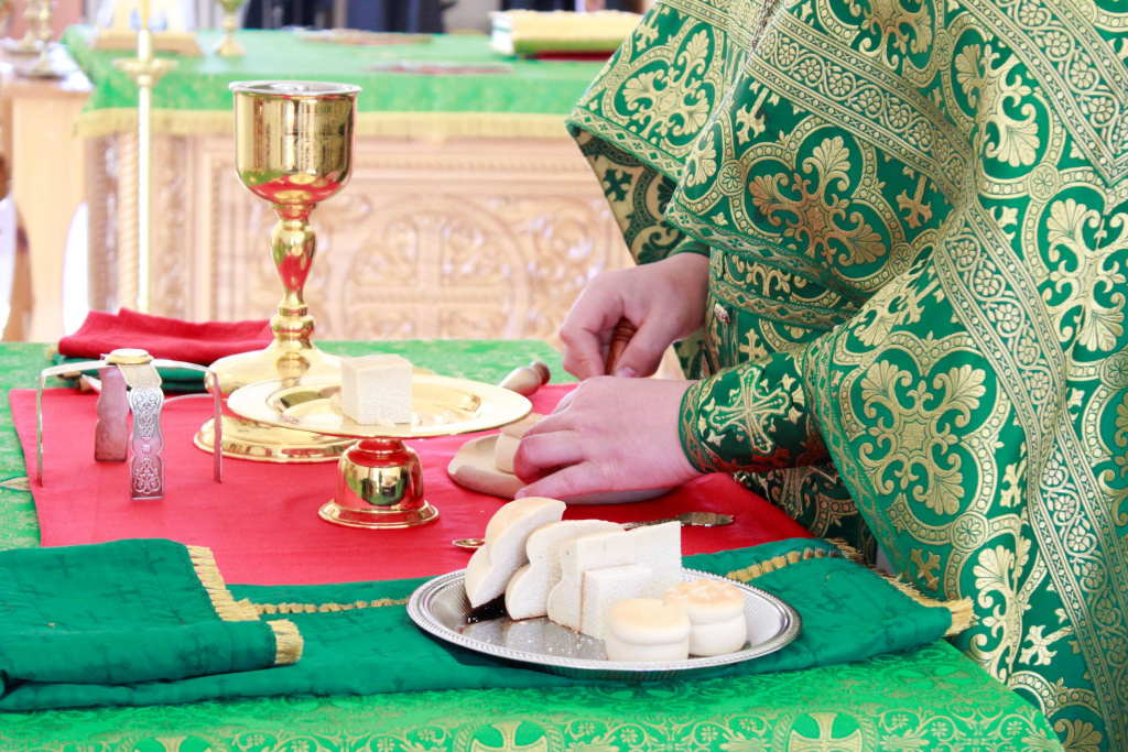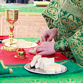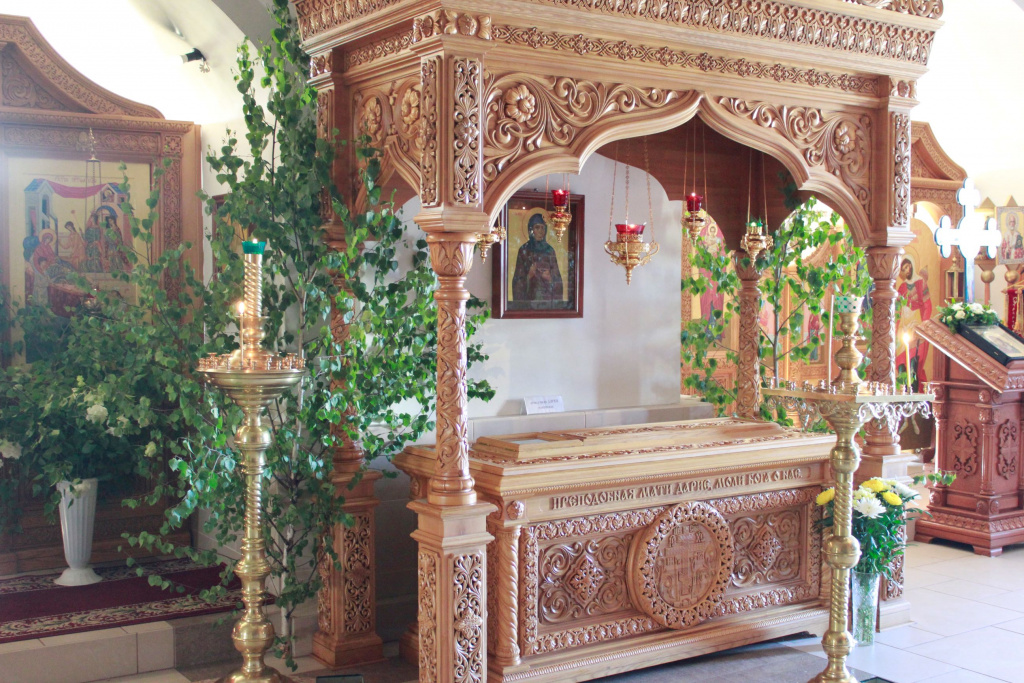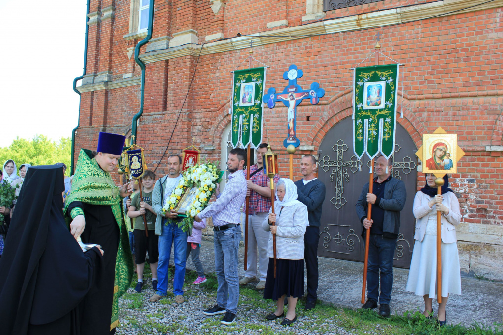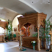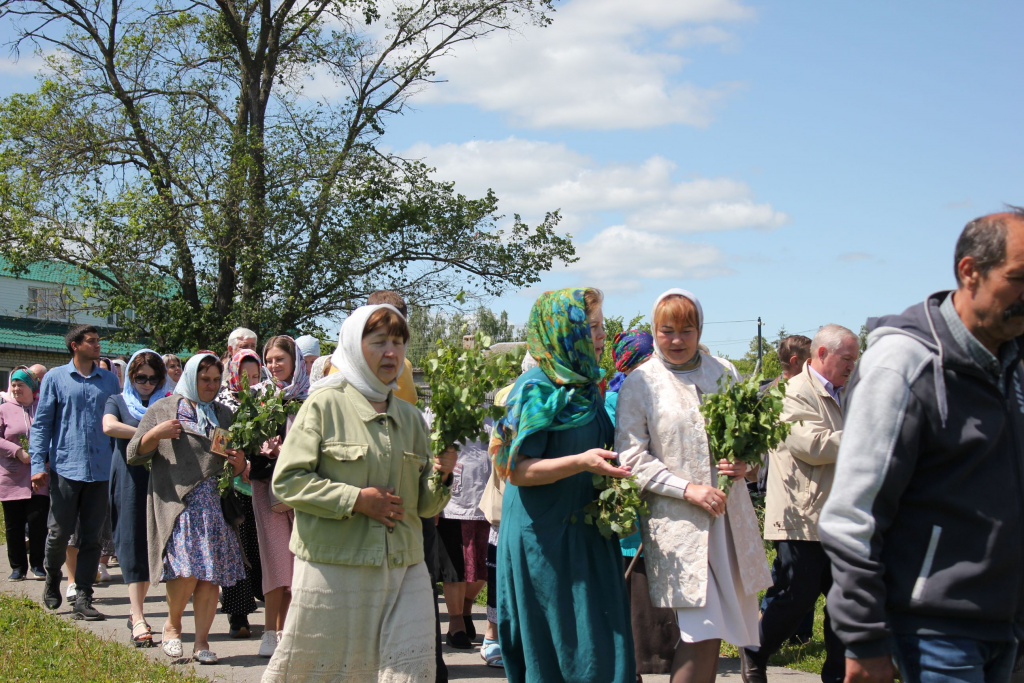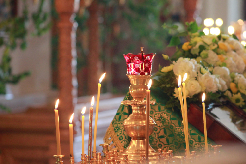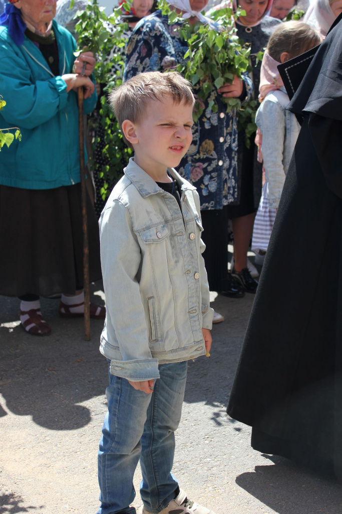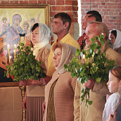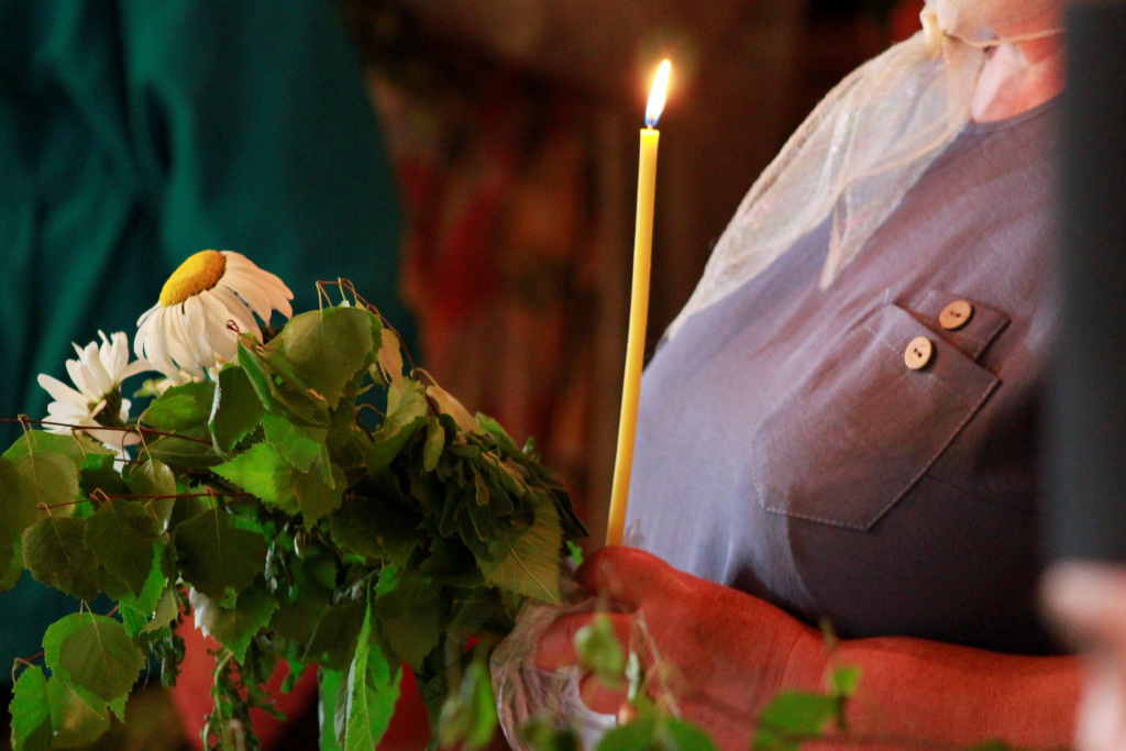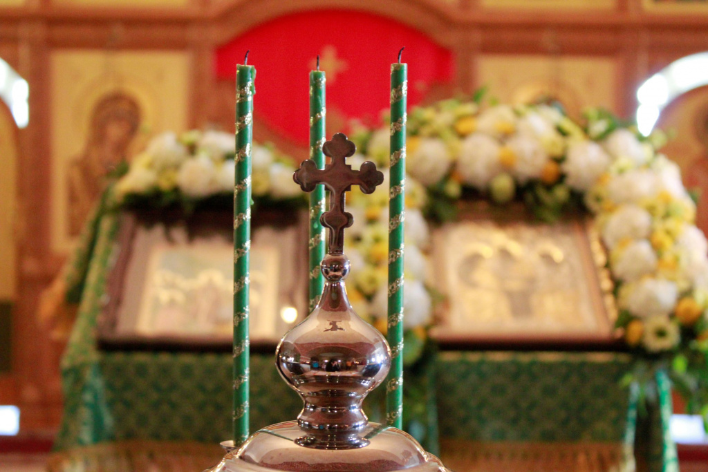 Литургия в праздник Святой Троицы необычайно живописна: храм украшен ароматной зеленью: травами, ветвями берез, на аналое украшенная цветами икона Святой Троицы, зеленые облачения священнослужителей, коленопреклоненные молитвы — все говорит верующим о великом замысле Божием, о победе Христа над смертью, о Царстве Божием.