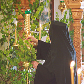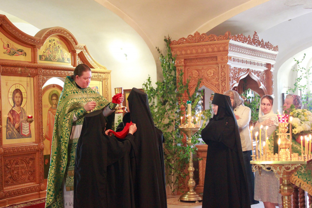 В Сезеновском монастыре торжественным богослужением встретили престольный праздник Троицкого собора обители. Накануне Праздника состоялось Всенощное бдение в храме Рождества Пресвятой Богородицы. Особым моментом на всенощном бдении всегда является стихира на стиховне «Царю Небесный», которую впервые после Воскресения Христова торжественно поет хор. Это молитвенное призывание Святого Духа знаменует собой новый период жизни Церкви – ниспослание обетованного Утешителя, Святого Духа, отныне пребывающего в своей полноте с верными церковными чадами.