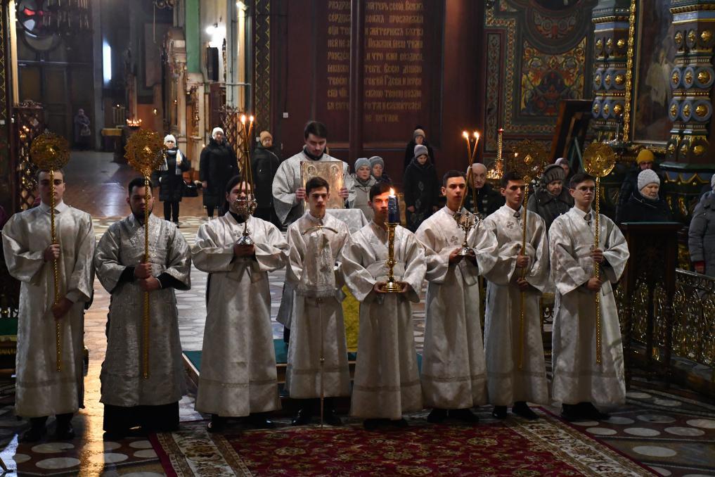За богослужением молились настоятельница Иоанно-Казанского женского монастыря села Сезеново, руководитель епархиального отдела по монастырям и монашествующим игумения Феофания (Проценко), настоятельница Знаменского монастыря города Ельца игумения Аркадия (Енькова), настоятельница Свято-Димитриевского Иларионовского женского монастыря села Троекурово игумения Матрона (Брыксина), прихожане собора и жители города.
