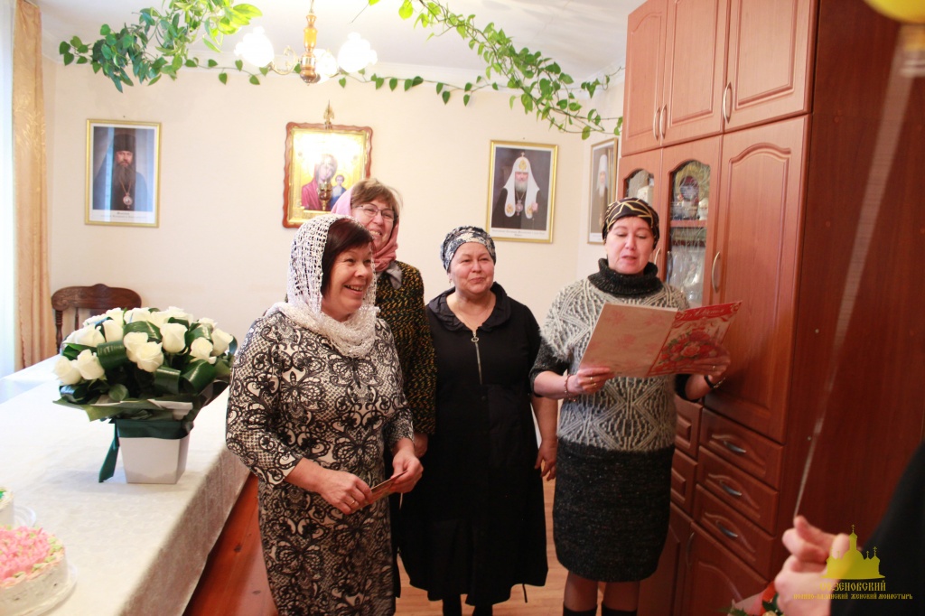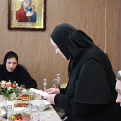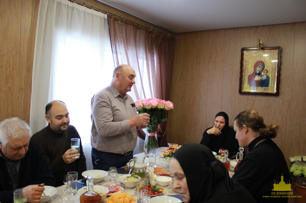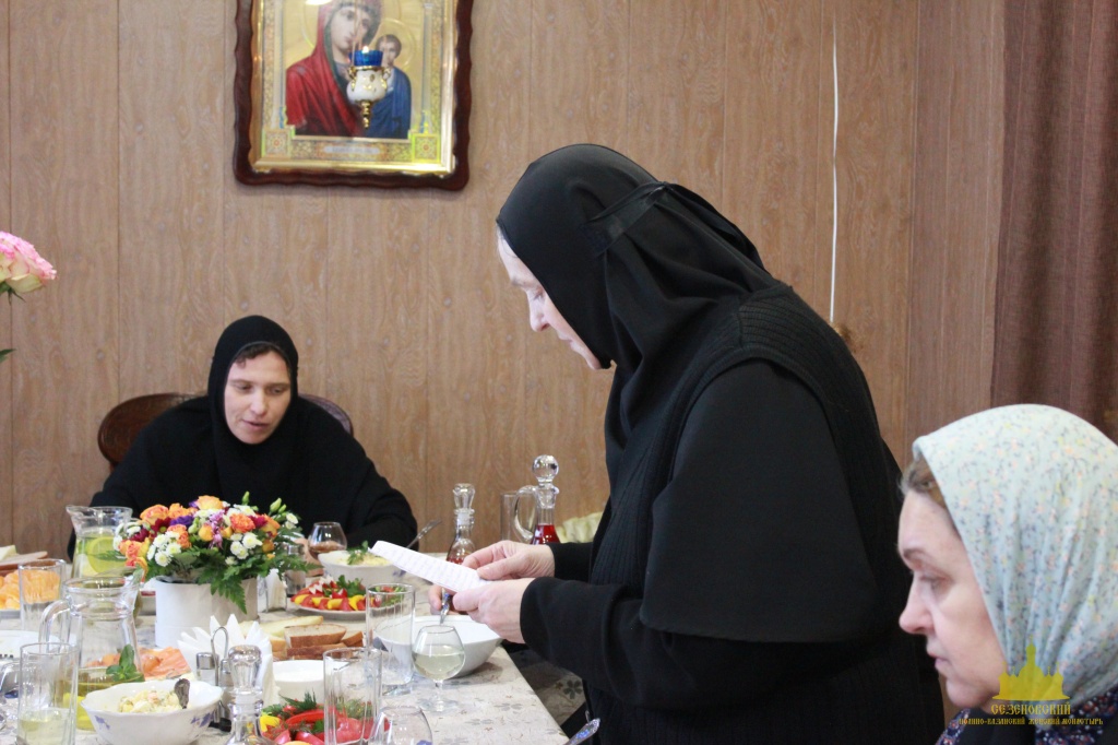 По окончании Богослужения для Матушки, сестер, клириков и гостей была предложена праздничная трапеза, во время которой в адрес игумении Феофании прозвучало много добрых слов и пожеланий от сестер, прихожан и гостей обители.