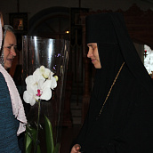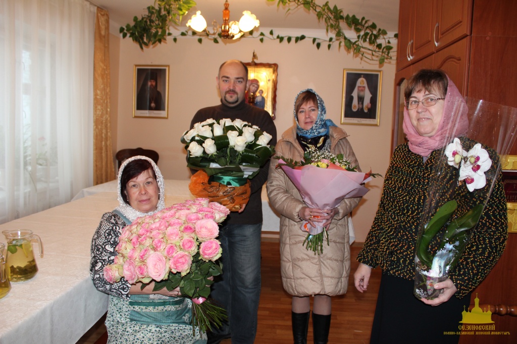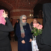В течение дня Матушка Феофания принимала поздравления от многочисленных лиц, которые передавали слова благопожелания, здравия и многолетия.