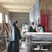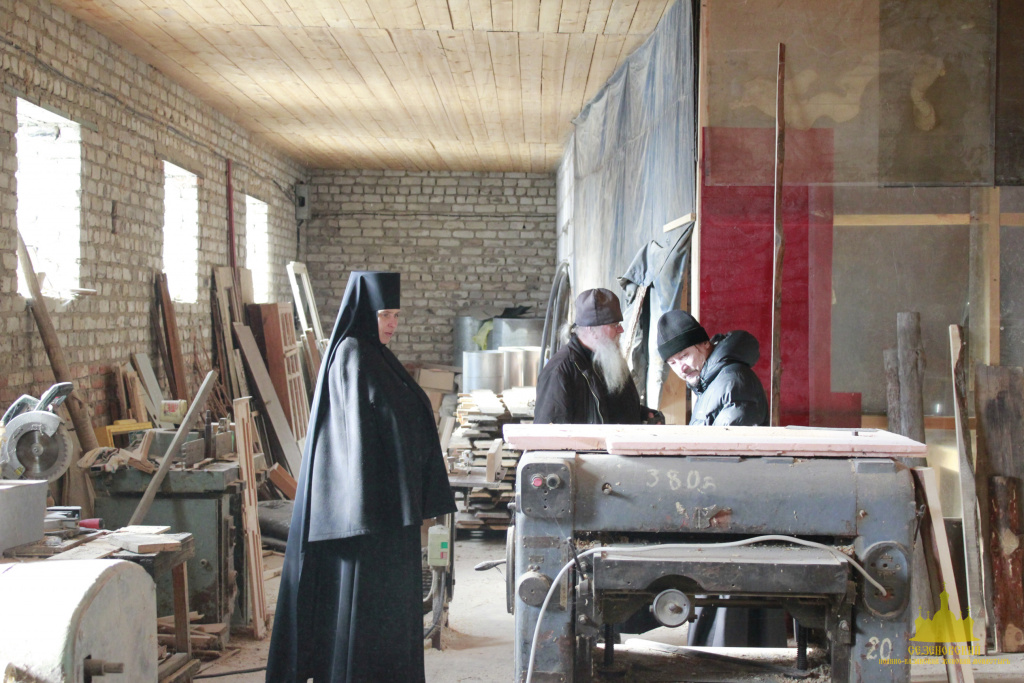 После обзорной экскурсии игумен Тихон показал гостям монастырские мастерские: столярную, кузницу, просфорную.